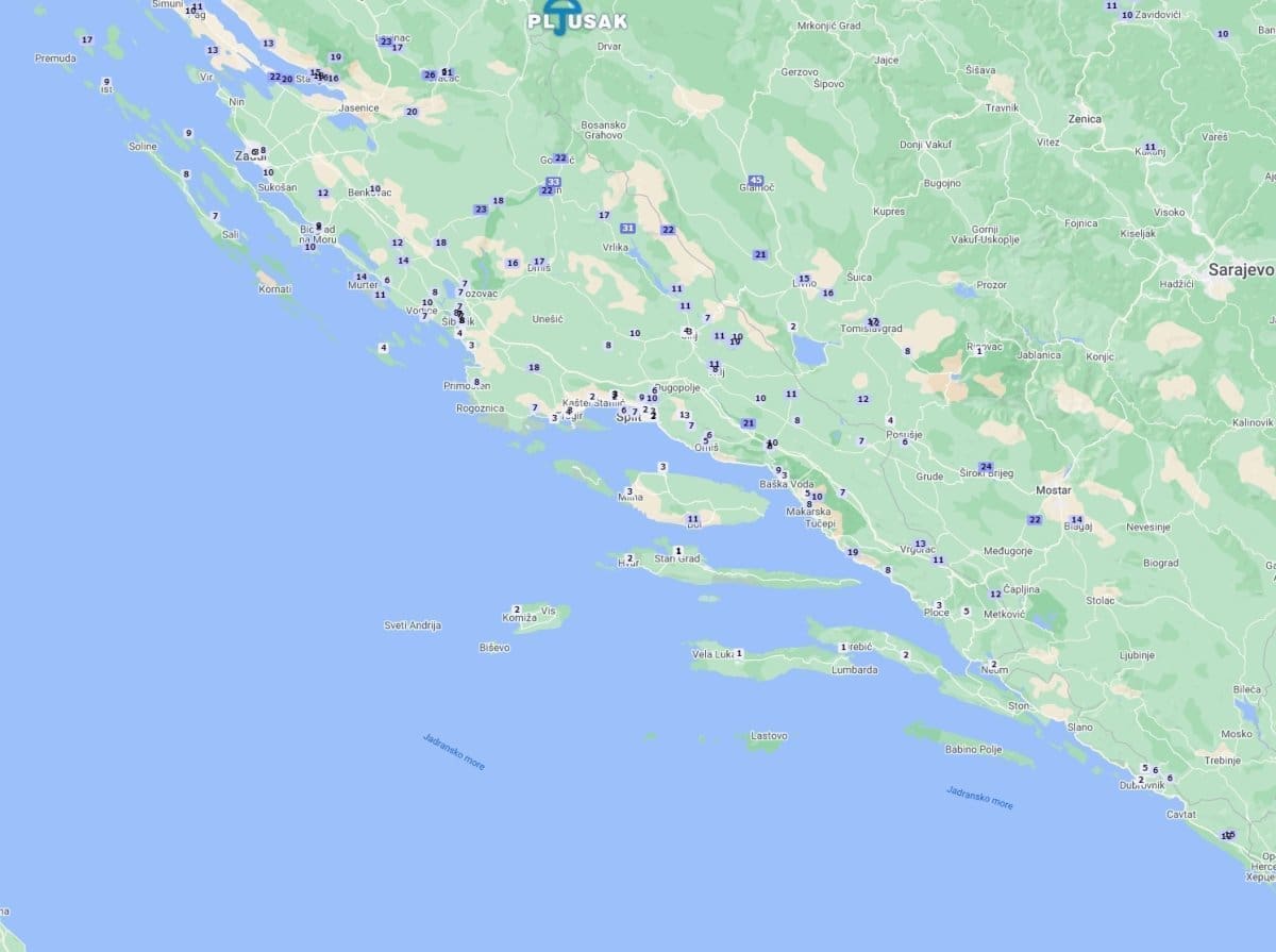 Na Jadranu mjestimice grmi, u srednjoj Dalmaciji zabilježeni su i jači grmljavinski pljuskovi.