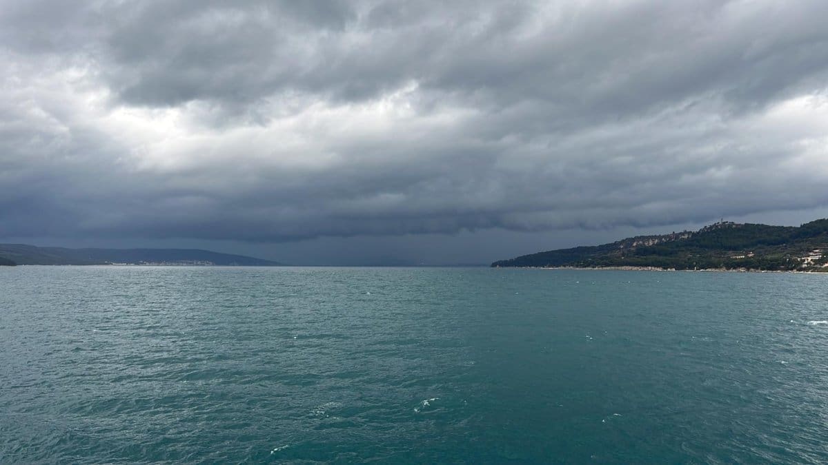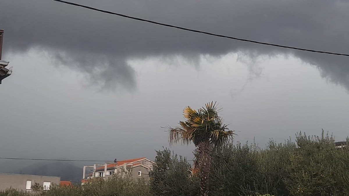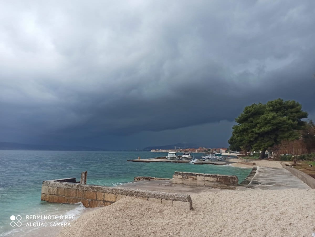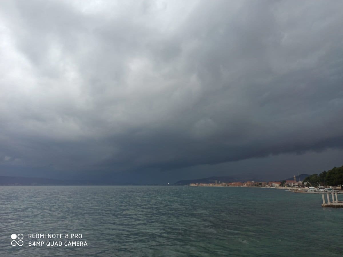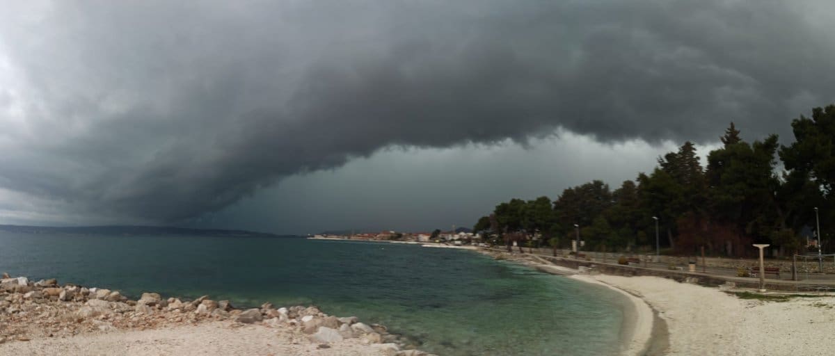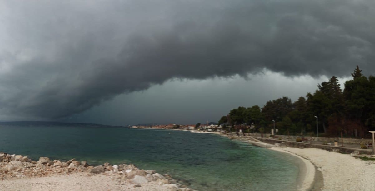 Trogirsko područje zahvatio je "shelf cloud" s obilnom oborinom, a mjestimice ima i tuče. Jugo na fronti naglo prelazi u tramontanu.