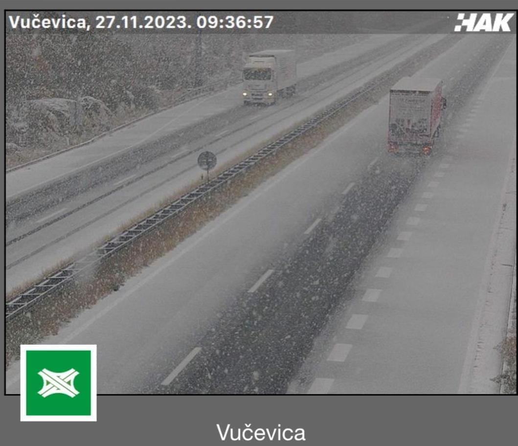 "Na autocesti A1 Zagreb-Ploče-Karamatići dionicom Prgomet-Split-Bisko vozi se uz ograničenje brzine 40km/h zbog snijega. Molimo korisnike za poštivanje prometnih znakova.