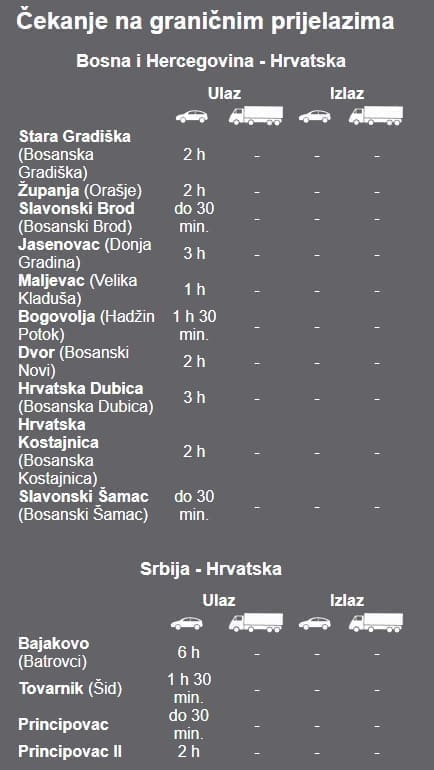 Pojačan je promet na autocesti A3 Bregana-Lipovac i na naplati Zagreb-istok u smjeru Bregane te na pojedinim graničnim prijelazima sa Srbijom, Crnom Gorom te Bosnom i Hercegovinom na ulasku u Hrvatsku gdje su čekanja i po nekolilo sati.