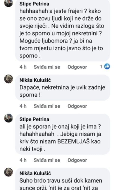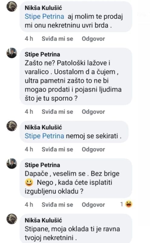 "Aj molim te prodaj mi onu nekretninu uvri brda", odgovorio je Kulušić, no Petrina mu nije ostao dužan.