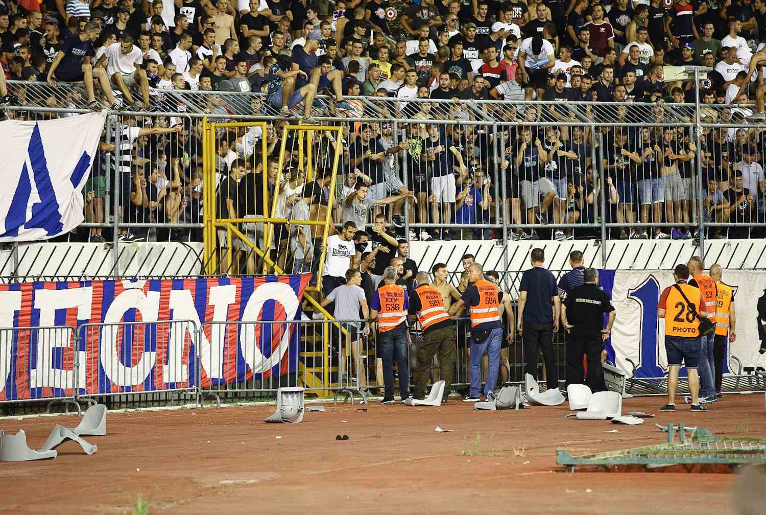 Nakon sučevog zvižduka dio navijača sa Sjevera ušao je u teren i morala je intervenirati policija.