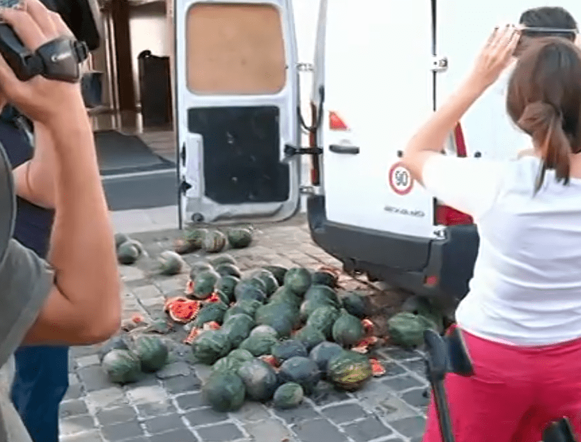 Organizirao je ondje, pred vratima Vlade, iskrcavanje hrpe lubenica, sve kako bi ukazao na neravnopravan položaj hrvatskih i ostalih europskih poljoprivrednika.