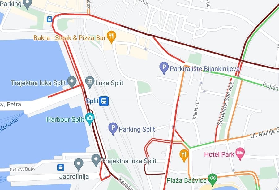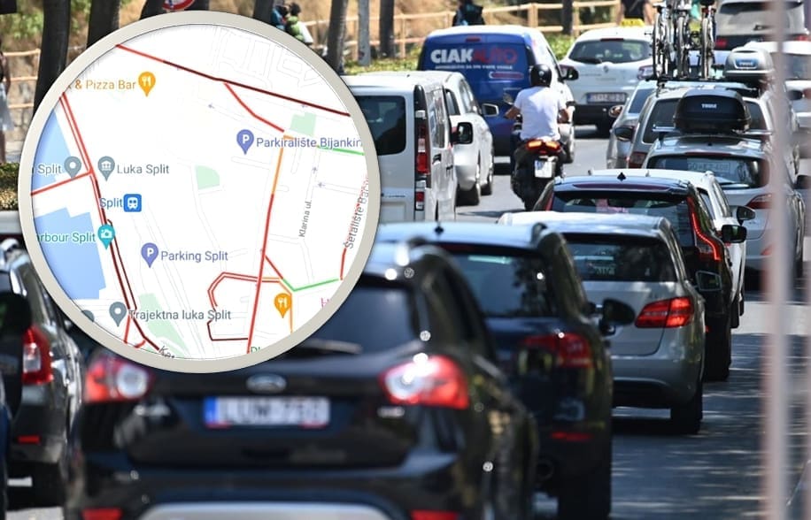 "Zbog velikog priliva vozila koja idu prema trajektnoj luci u Splitu radi ukrcaja na trajekt, u ulici Kralja Zvonimira stvaraju se gužve i povremeni zastoji.