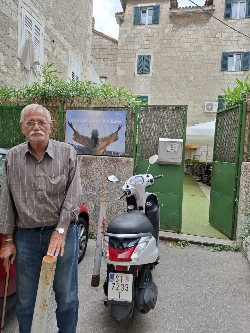 Prije koji dan je jednom strancu spasio život. Dok je šetao Šperunom čuo je strankinju kako doziva u pomoć. Kada joj je prišao bliže vidio je muškarca na podu. Na tečnom francuskom jeziku, jer govori nekoliko svjetskih jezika, je pitao što se dogodilo, a ona mu odgovorila da je njen suprug teški srčani bolesnik koji nije sa sobom ponio tablete koje inače u tim situacijama stavlja ispod jezika.