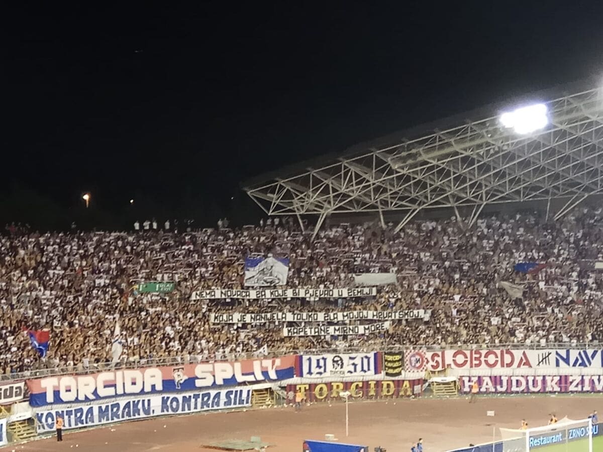 "Nema novaca za koje bi pjevao u zemlji koja je nanijela toliko zla mojoj Hrvatskoj. Kapetane, mirno more" - pisalo je na trasparentu.