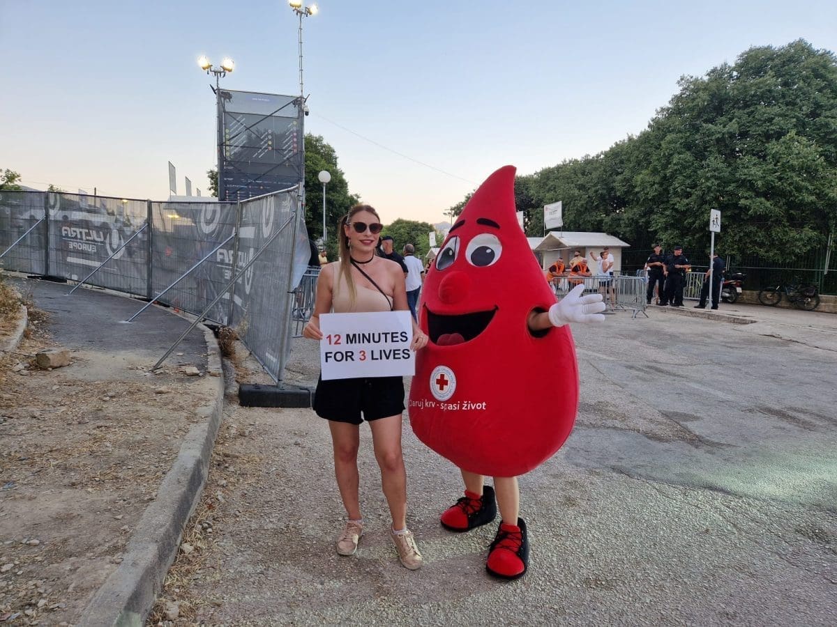 Kapljica, maskota splitskog Crvenog križa, na Ultra festivalu družila se s posjetiteljima i promovirala darivanje krvi među mladima, a partijaneri su oduševljeno pozirali držeći u rukama poruku 12 minuta za 3 života.