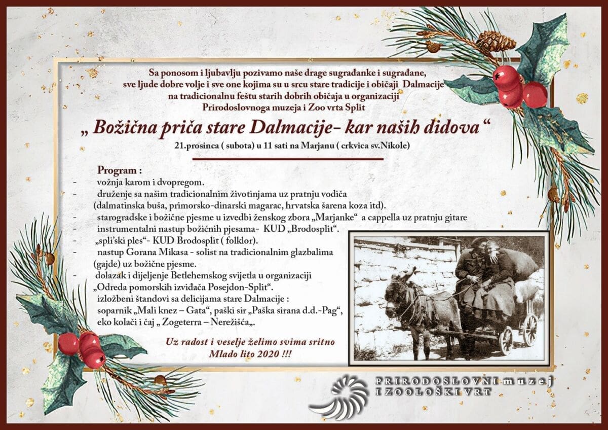 U organizaciji Prirodoslovnog muzeja i ZOO vrta Split upriličit će se "Božićna priča stare Dalmacija - kar naših didova".