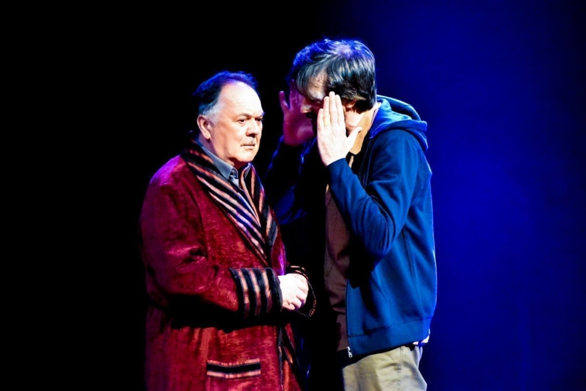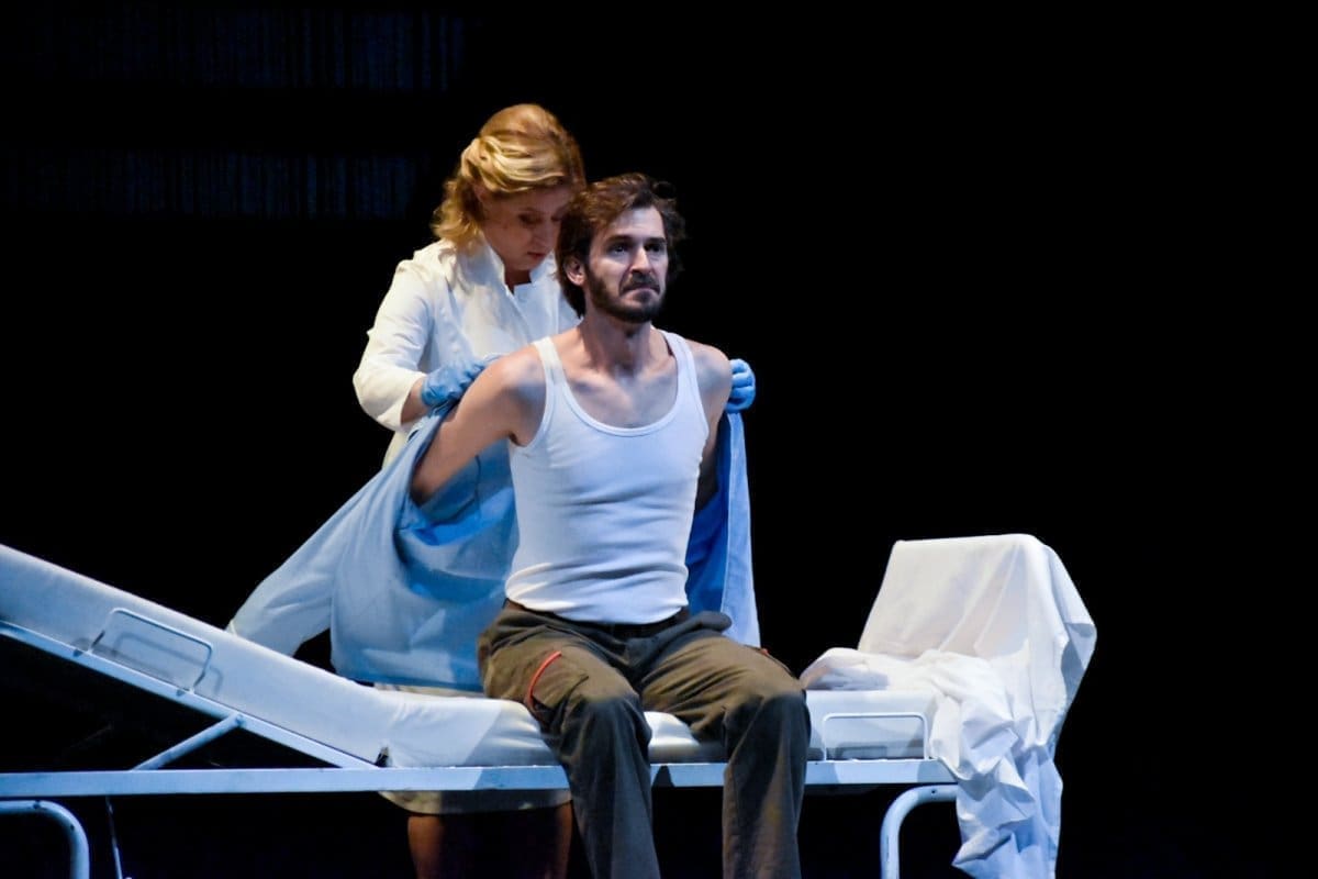 Nenad Srdelić kao Djed i Arijana Čulina kao Baka neobično su nalikovali svojoj fenomenalnoj izvedbi Starog i Stare u Ionescovu „Nosorogu“, uz posebnu pohvalu za dijalektalni govor. Tajana Jovanović i Anastasija Jankovska bile su izvrsne u apsurdiziranju stereotipa, posebno u ulozi Policajke i Medicinske sestre, a Pere Eranović golemim koracima napreduje u ulogama koje se na prvu ne mogu povezati s umiljatim dječačkim licem – njegov je Inspektor bio personifikacija nervozna činovnika koji, retroaktivno duboko uronjen u ljudsku tragediju, dubinski ne razumije tragična junaka. Sjajno je prenio nestrpljivost, stres, nerazumijevanje i bizarnost svijeta u kojemu baš onima koji bi trebali najviše razumjeti ljudsku sudbinu – ona postaje samo jedan broj na fasciklu. Filip Radoš bio je beskrajno šarmantan kao nagluhi Susjed koji Damira zamalo prebacuje preko ruba, a Luka Čerjan dokazao je da čak i naočigled malena i bizarna uloga, poput uloge mačka, može učiniti razliku između dobre predstave i izvrsne predstave.