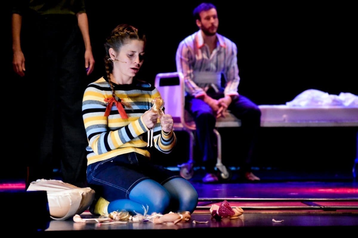 Prepoznatljive, grlate, potresne i emotivne melodije Tamare Obrovac nevjerojatno se uklapaju u priču u kojoj se protagonistu vlastite nevolje, Damiru, priviđaju glasovi predaka, glasovi ratova, obrana, ubojstava i krvi, glasovi koji ga naganjaju da u ruke uzme bajunet i tako hoda svojim životnim putom, s pravom u pripravnosti jer – nikad ne znaš tko će prvi potegnuti nož. Scenski pokret Alena Čelića posebno je došao do izražaja u sjajnim nastupima Mije Jurišića (Damira) i kćeri (Ana Marija Veselčić) – on u želji da bude čvrst i ponosan ipak stalno „šepa“ kroz život, grčevito se braneći od demona napada za koji nitko nije odgovarao, ona u djetinjoj naivnosti, ali i pameti koja je nekad gotovo rascijepi popola, doslovno je vuče za ruke, pokretom ističući – tata je preživio, ali i ovakav ga život, dok mu ja gledam ožiljak i igram se na plaži, ponekad opet trga preda mnom. Dojmu je dodatno doprinijela vrlo čista, jasna i nenametljiva vizija kostima Maje Peruzović, a gitarist Goran Cetinić-Koća i njegova završna pjesma bili su korak preko ruba za mnoge u publici, onaj završni prigušeni jecaj nad unutarnjom dramom čovjeka kojemu nitko ne može pomoći – eventualno sam sebi.