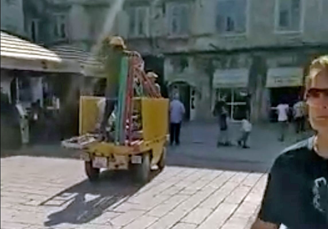 Naš čitatelj poslao nam je snimku kareta koji je jučer "debelo" iza 9 sati ujutro vozio Pjacom i kaže nam da je to uobičajena pojava. Glavni splitski komunalac, Damir Ordulj, potvrdio nam je da ovo dostavno vozilo nema dozvolu kretati se pješačkom zonom u vrijeme kada je prošlo Pjacom.