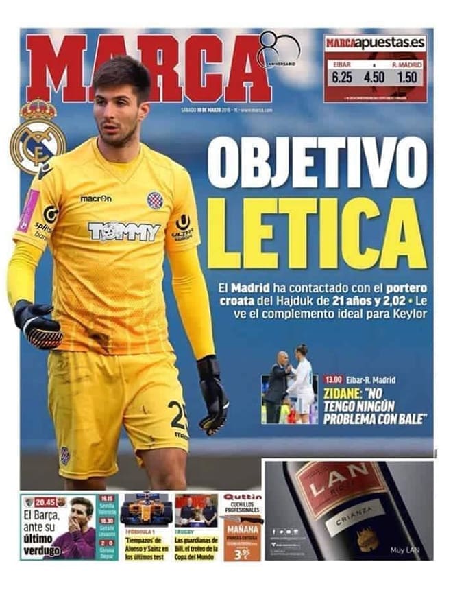 Na toj istoj naslovnici je navedeno kako bi Karlo Letica bio odlična zamjena Keyloru Navasu trenutnom vrataru "Kraljevskog kluba".