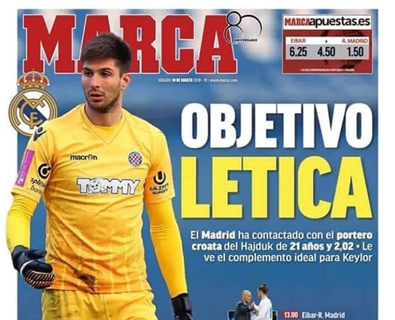 Po društvenim mrežama vrlo se brzo proširila naslovnica poznatog španjolskog sportskog lista Marca. Oni navode kako je Real Madrid već stupio u kontakt s Hajdukom i 21- godišnjim Leticom.
