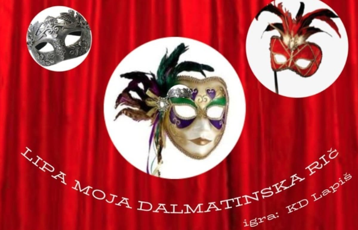 Vrijedna ekipa KD Lapiša iz Lokve Rogoznice, a uz podršku CZK Omiš i dječjeg kazališta Harlekin voditeljice Ivane Giove Župa, u ponedjeljak 20.2.2023. u 19 sati , odigrati će svoju uspješnicu "Lipa moja dalmatinska rič".