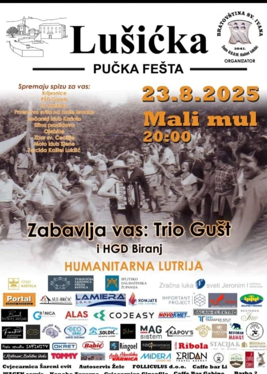 U subotu, 23. kolovoza, s početkom u 20 sati, održava se pučka fešta u Kaštel Lukšiću.