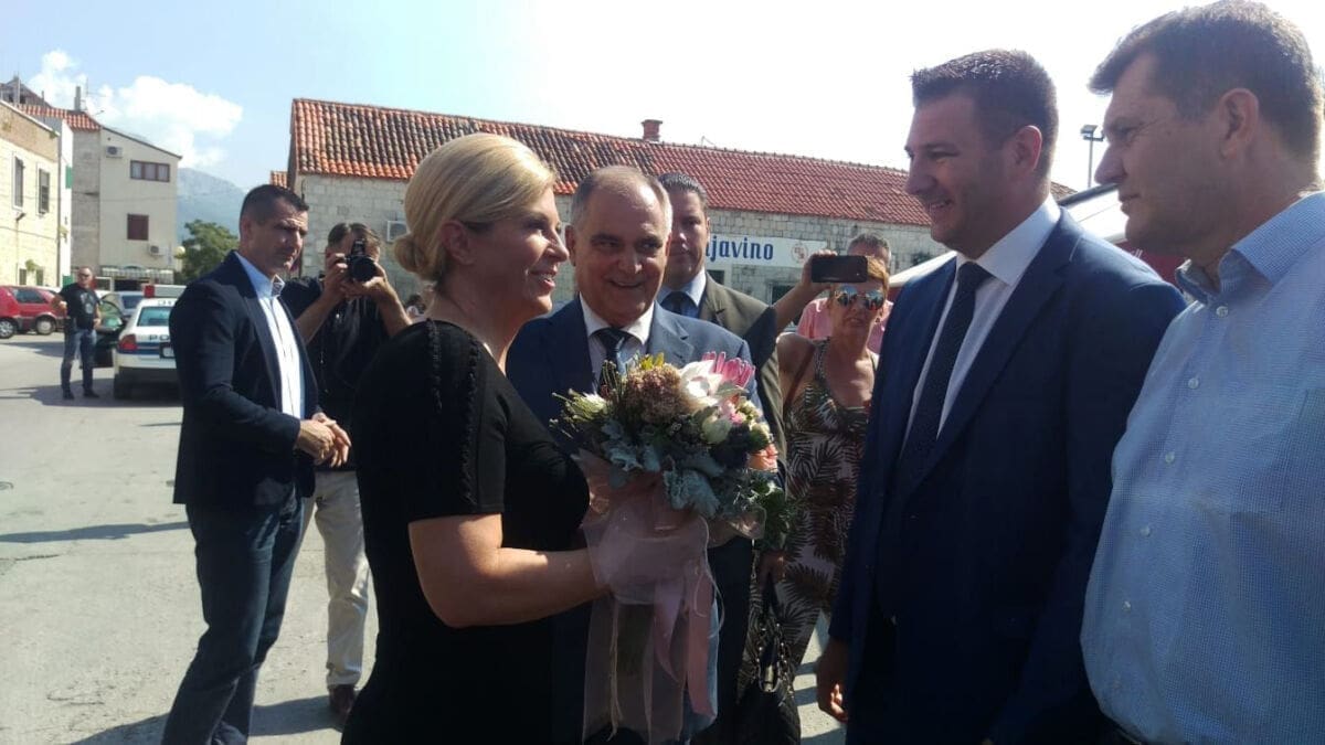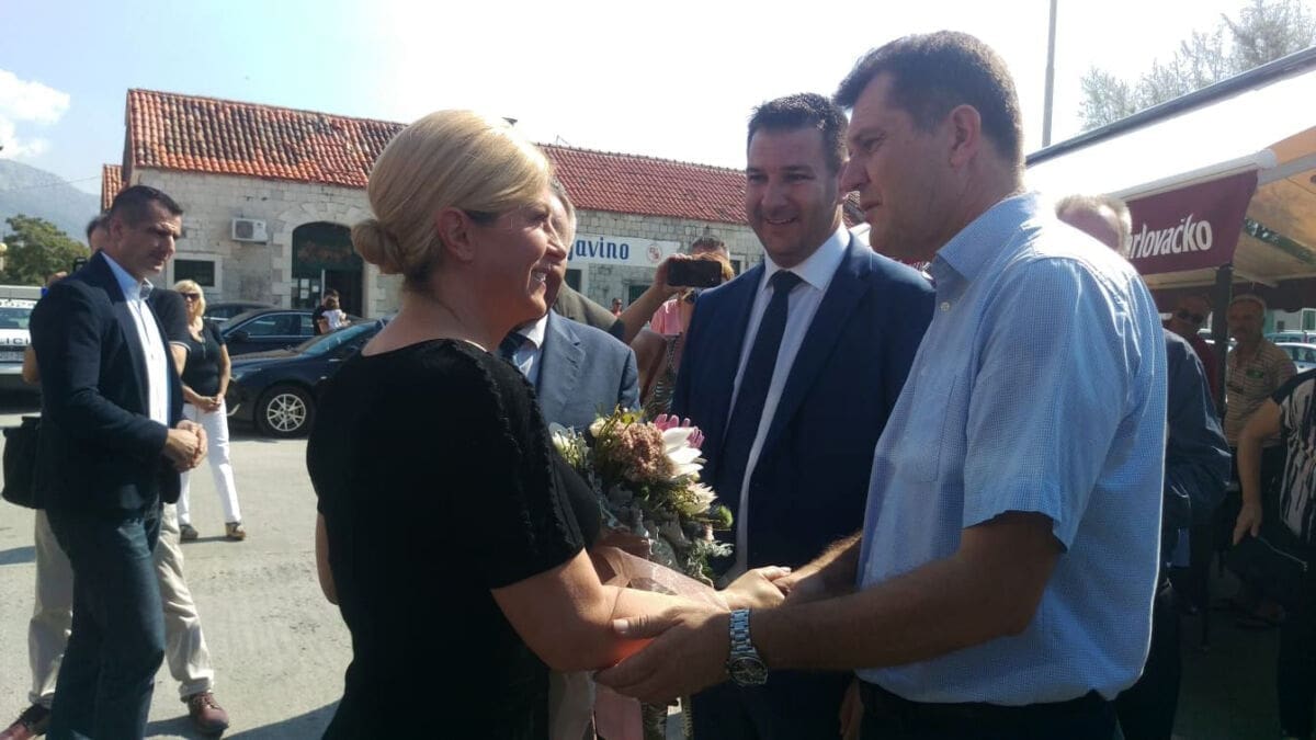 Dobrodošlicu u mjesto poželjeli su joj župan Blaženko Boban, gradonačelnik Kaštela Denis Ivanović i predsjednik Gradskog vijeća Kaštela Ivan Udovičić. Građani su predsjednicu dočekali velikim aplauzom, a jedan postariji gospodin joj je uručio ružu. Grabar Kitarović ružu je prihvatila te popričala s njim, kao i s ostalim Kaštelanima koji su je došli pozdraviti.