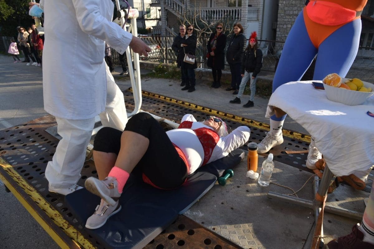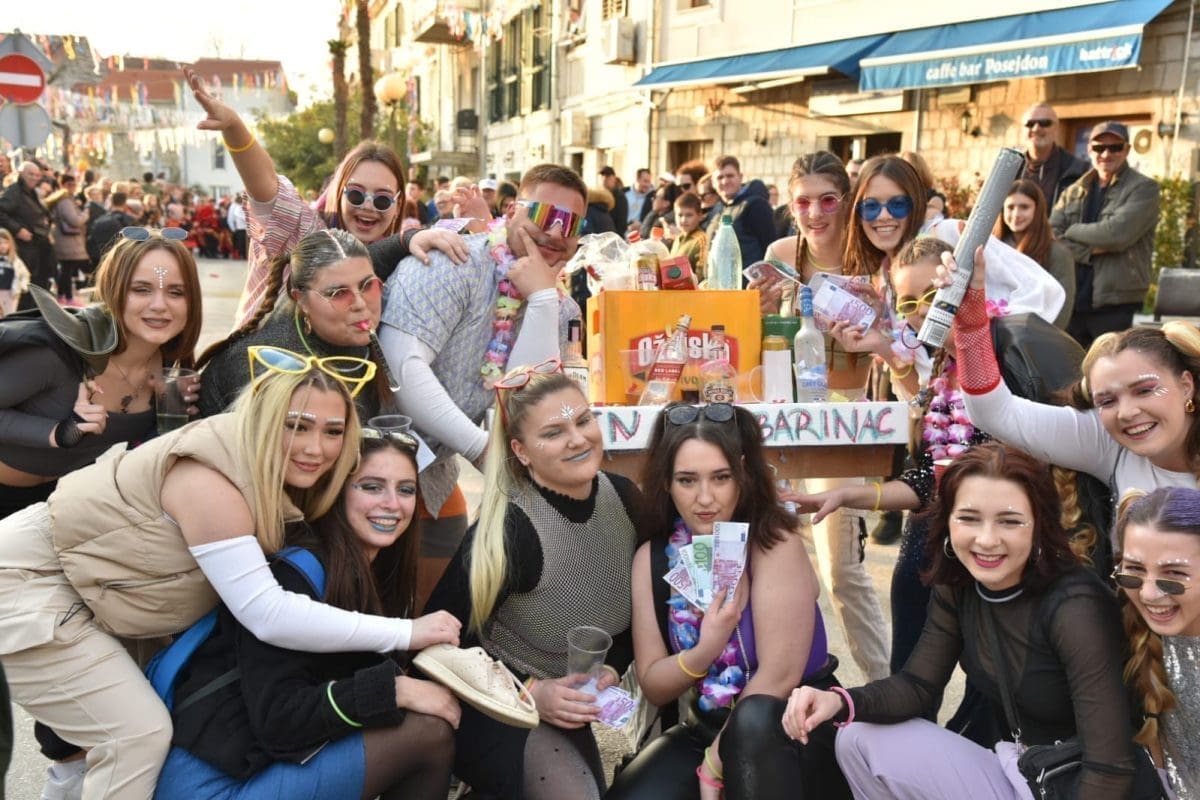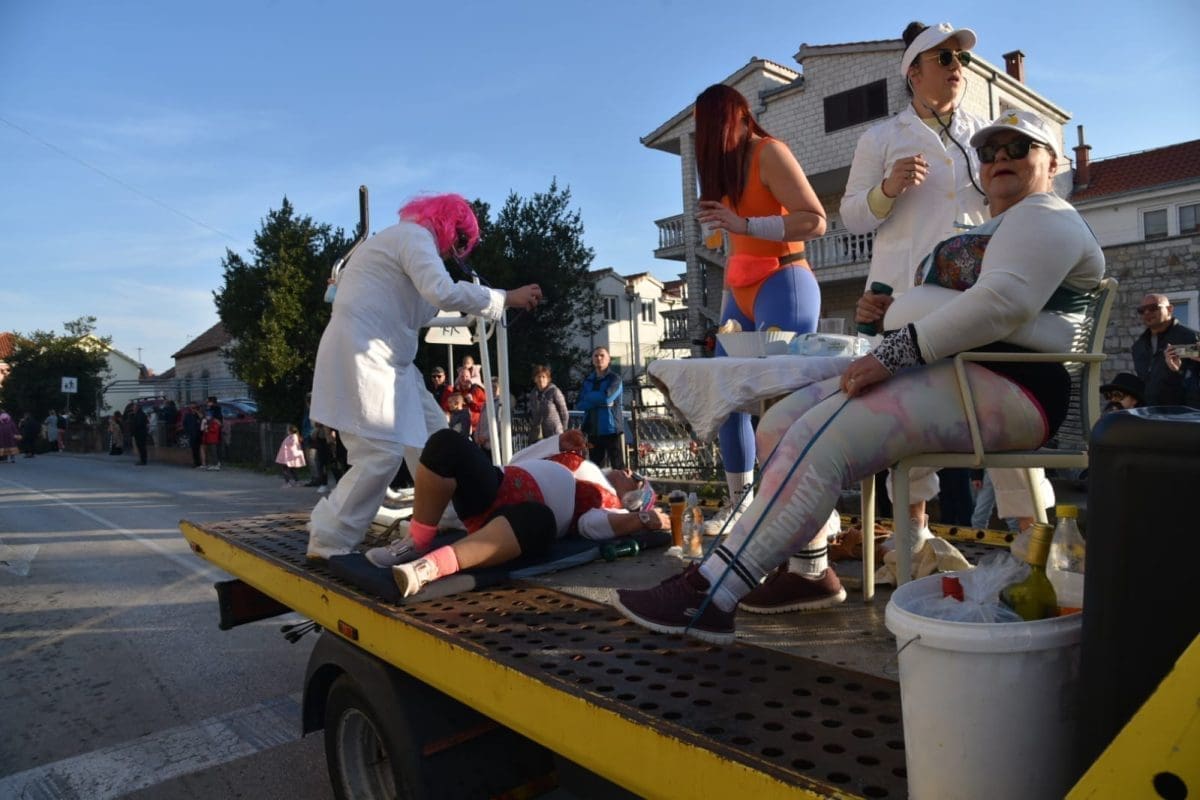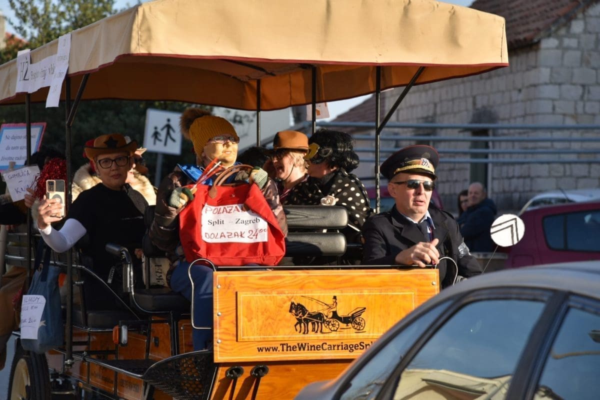 Po tradiciji u kočiji se nalazio prvi čovjek Kaštela Denis Ivanović te kraljica kamelovskog karnevala. Bilo je tu raznih tema, a kako to već tradicija nalaže, najviše onih tema koje muče malog čovika. Pa su tako umirovljenici zatražili besplatni HŽ, KUD Putalj osvrnuo se na rad sudaca, a KU Polantana na "Island of "Barbarinac".