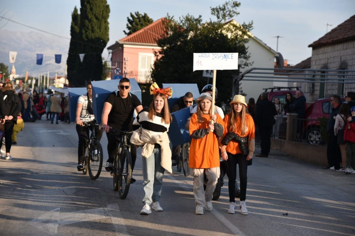Povorka je u 15 sati krenula iz Marine Kaštela, pa Cestom dr. Franje Tuđmana do Brca u Kaštel Kambelovcu. I u ovoj povorci, osim domaćina, sudjelovao je veliki broj gostiju, i to iz Prološca, Benkovca, Trogira, Omiša, Primoštena, Vranjica, Biograda na moru, Župe Dubrovačke te Ivanić Grada. Povorka se sastojala od 25 točki s preko 300 sudionika, a vjerujemo kako je svatko pronašao nešto za sebe te se nasmijao do suza. Na samom početku povorke našle su se Kaštelanske mažoretkinje, a iza njih glazbari HGD Biranj.