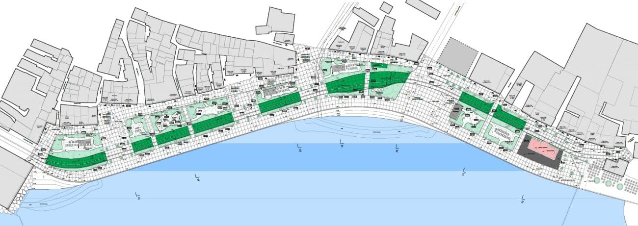 Nova obala bit će oblikovana u elegantnoj zakrivljenoj liniji, na visini od 1,3 metra iznad mora, uz naglasak na sigurnost, funkcionalnost i estetsku vrijednost prostora.