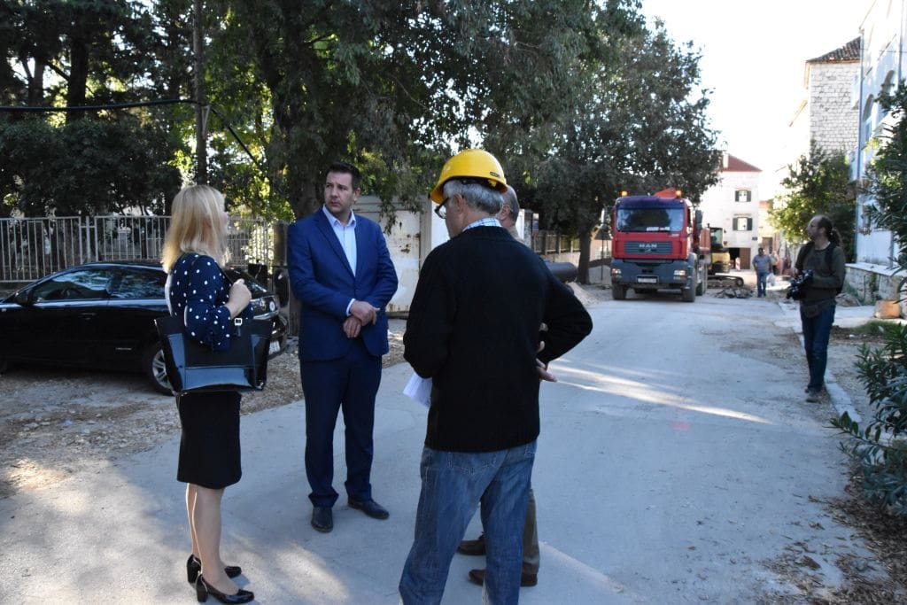 Radove na rekonstrukciji obišao je gradonačelnik Kaštela Denis Ivanović zajedno s pročelnicom Upravnog odjela za komunalno gospodarstvo i imovinsko – pravne poslove Marijom Pelivan.