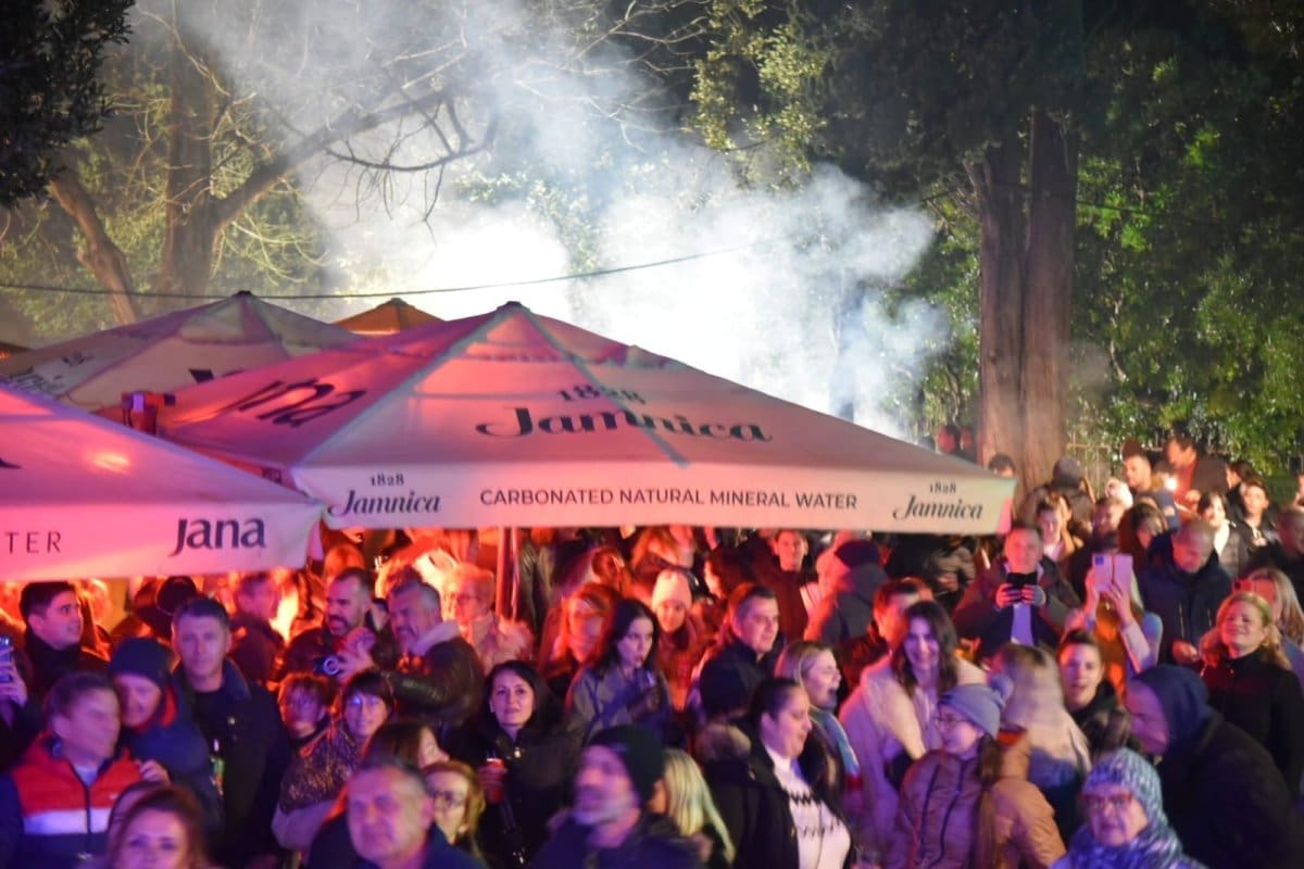 Točno u ponoć, nakon odbrojavanja, zapjevao se stari poznati hit "Nećemo noćas doma", uz koji su se Kaštelani grlili i čestitali Novu godinu, a nije nedostajalo ni vatrometa koji je osvijetlio lukšićko nebo.
