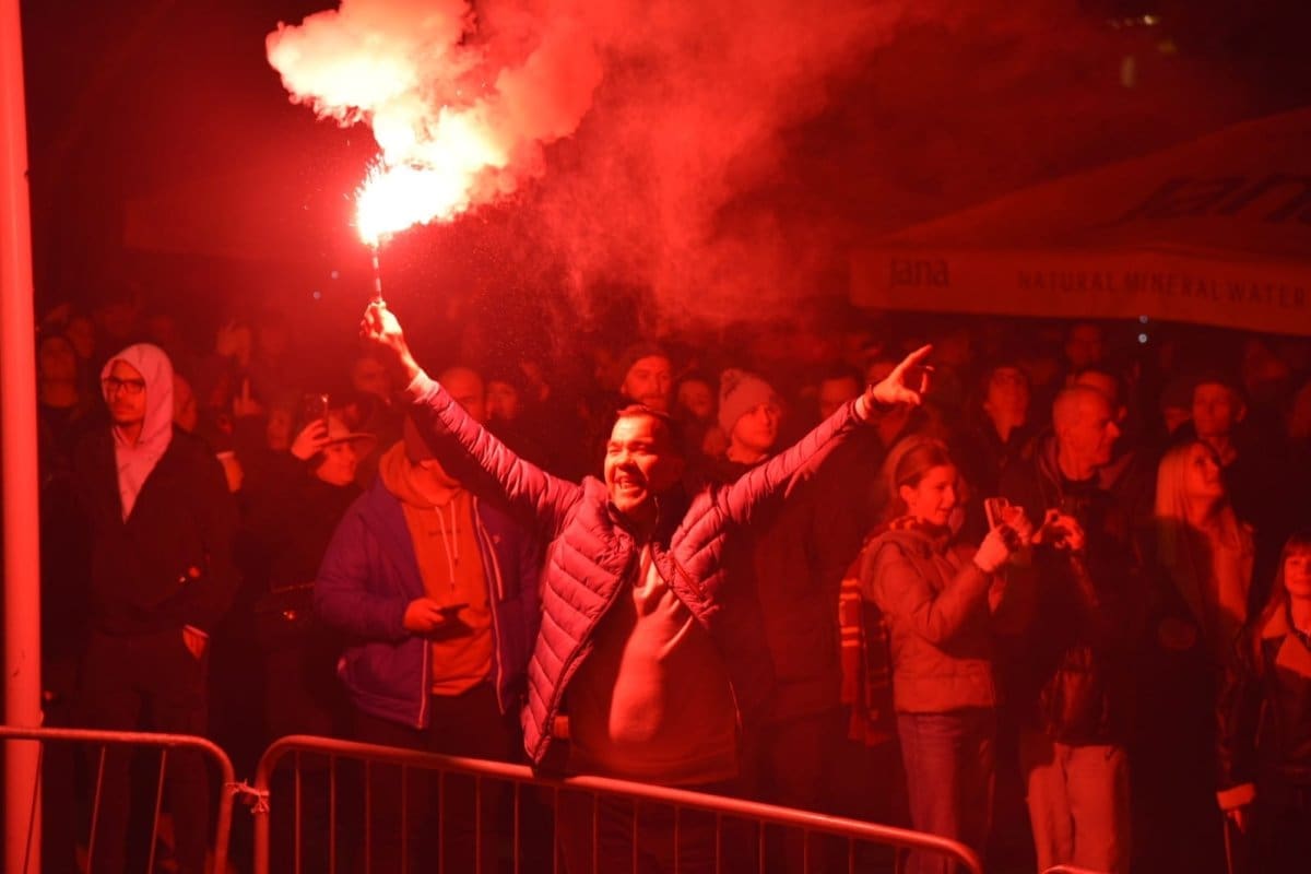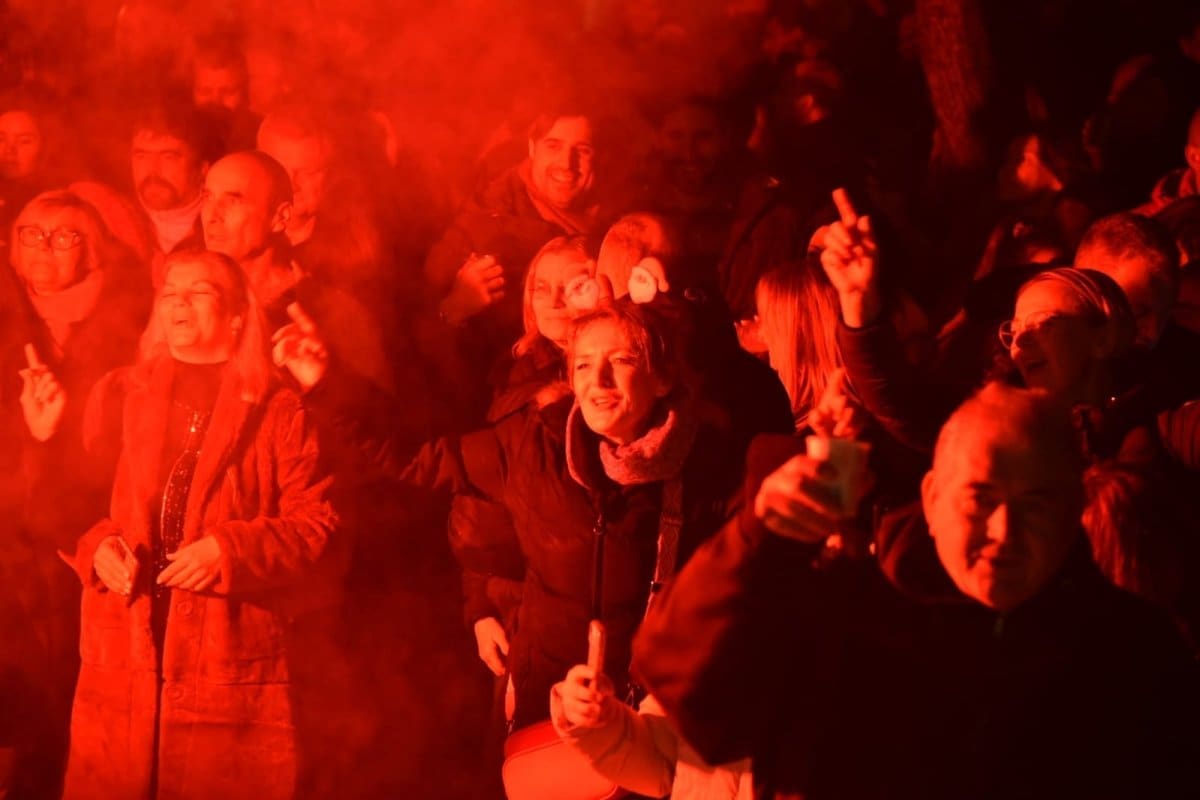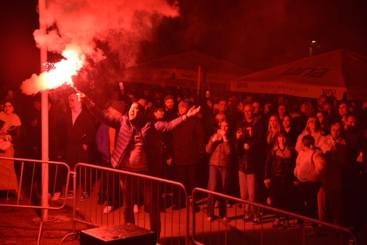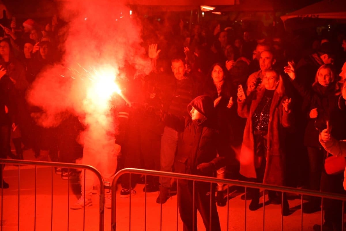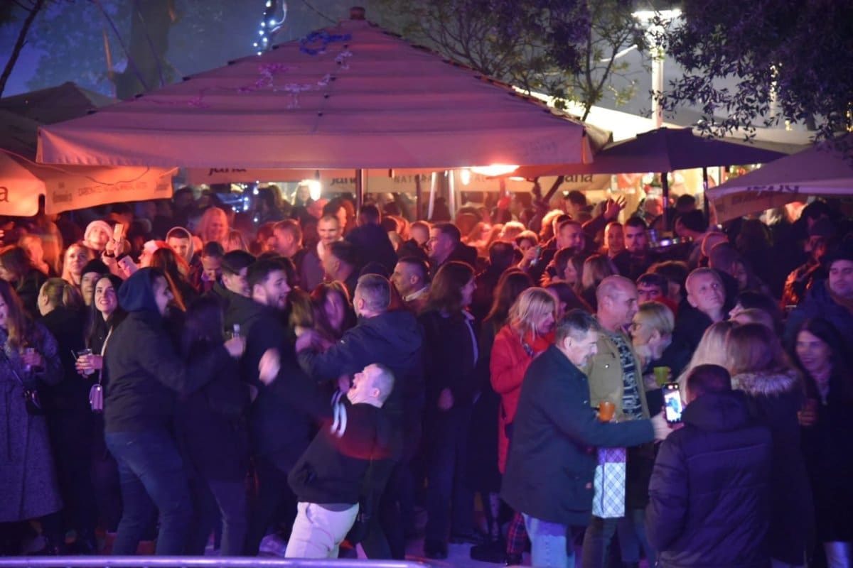 U nekoliko minuta park se ispunio slavljenicima koji su nazdravljali ispred adventskim kućica, ili u osobnom aranžmanu. Grupa Viva nizala je poznate hitove zabavne i narodne glazbe, a nije falilo ni navijačkih pjesama uz koje je zapaljena i poneka bengalka.