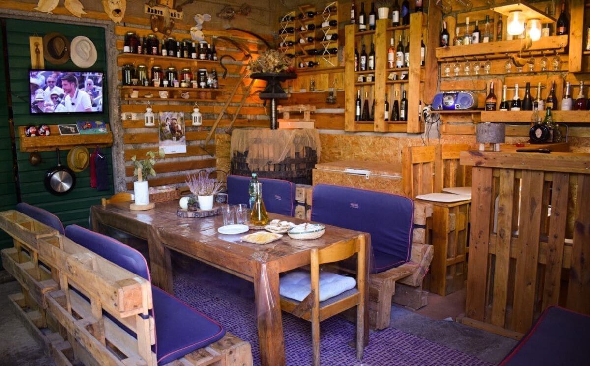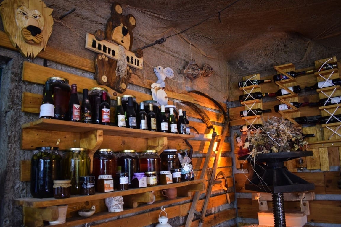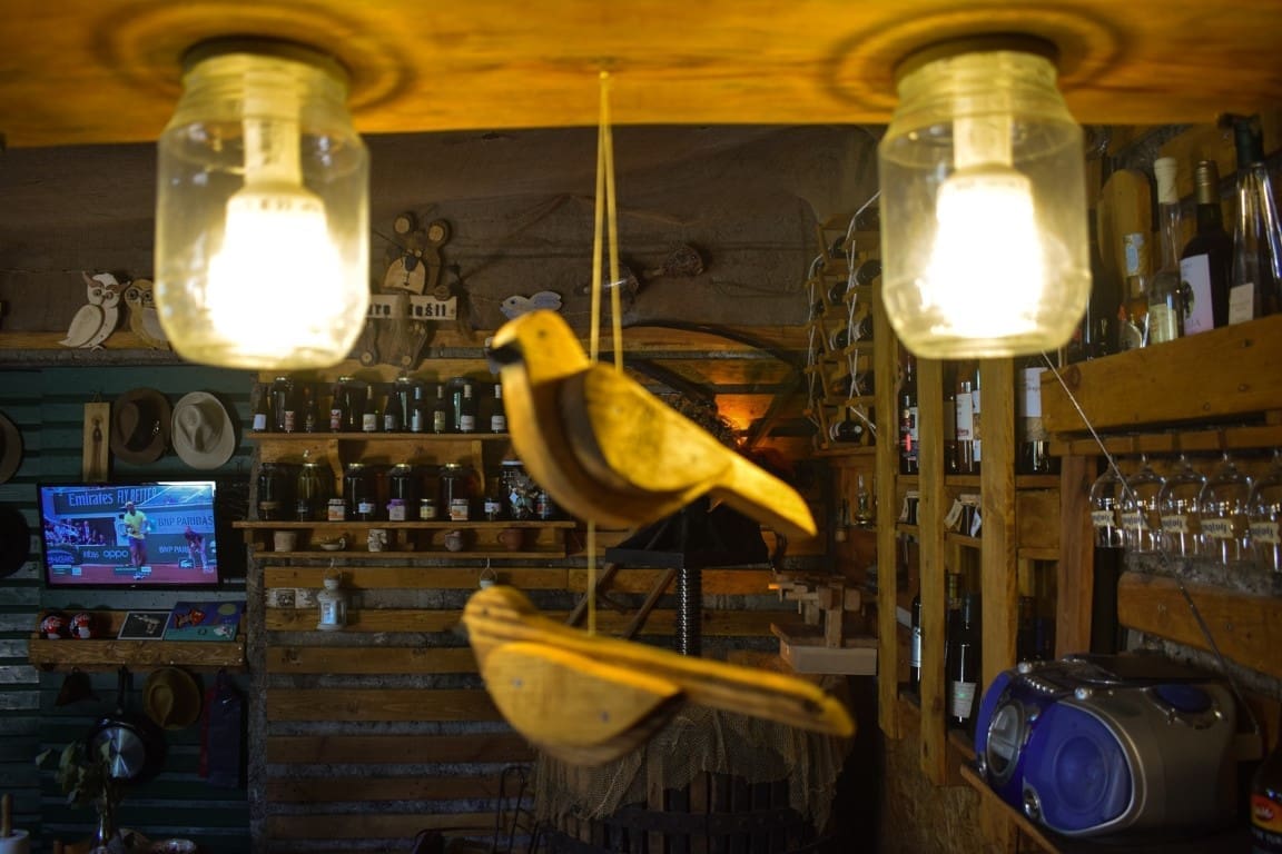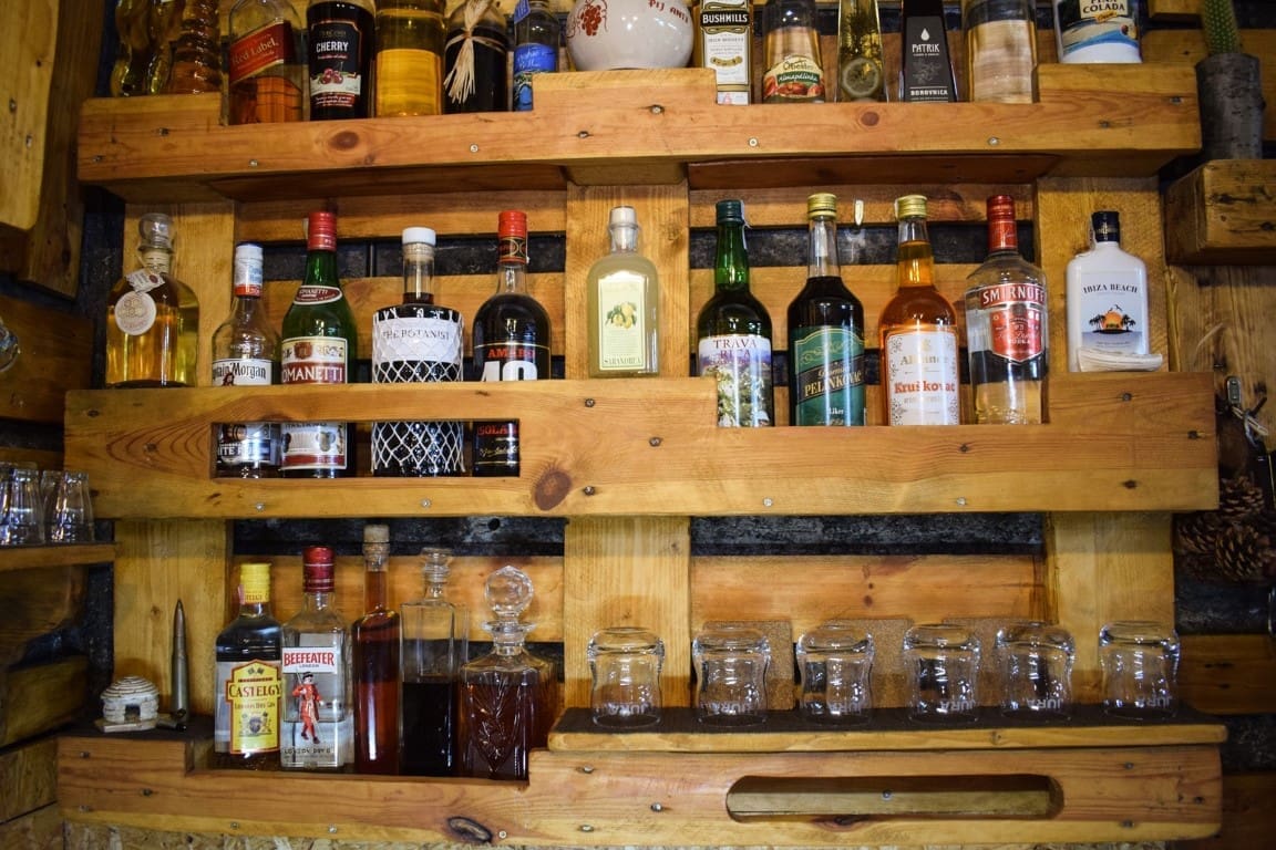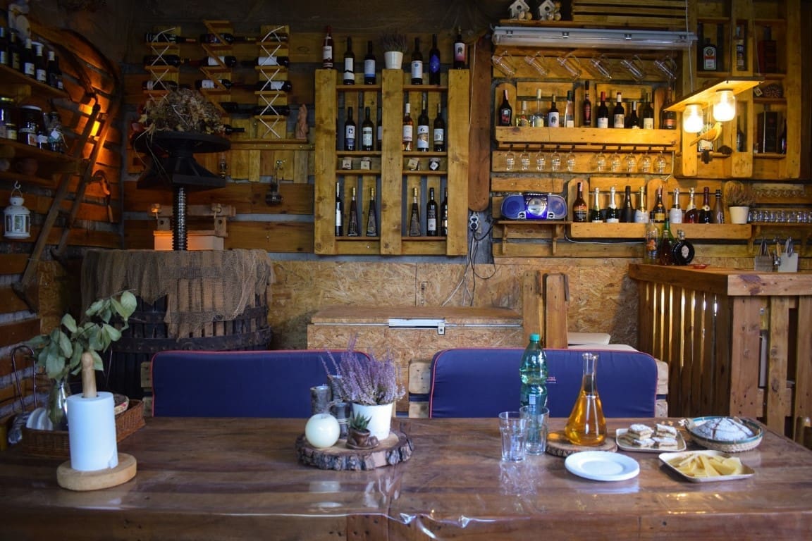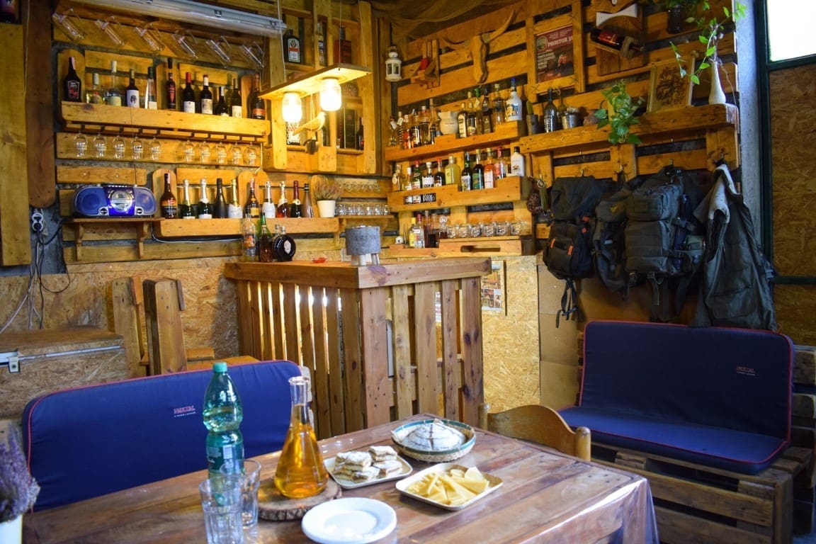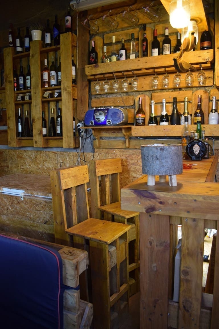 Što je konoba bez šanka vjerojatno se i Tonći zapitao kad je došao na ideju napraviti šank od paleta i barske stolice. Kako je supruga Kata iz ribarske obitelji, ribe izrađene od paleta postale su neizostavan detalj koji je dao jedan poseban štih ovoj konobi. Naravno, bilo je potrebno napraviti i sve vitrine na koje je domaćica mogla pospremiti svoje delicije koje priprema. Tu su i stalci za vino i razne rakije koje također rade sami.
