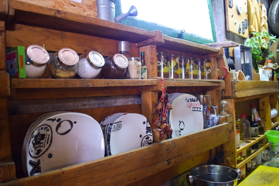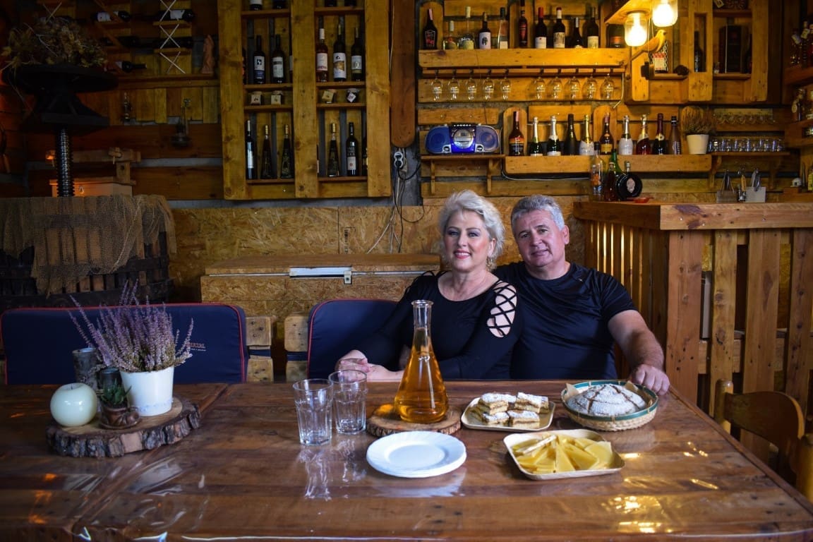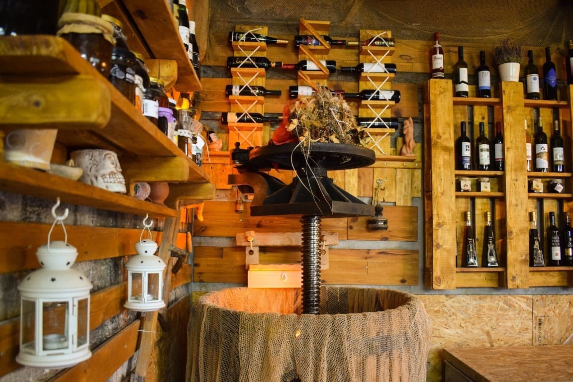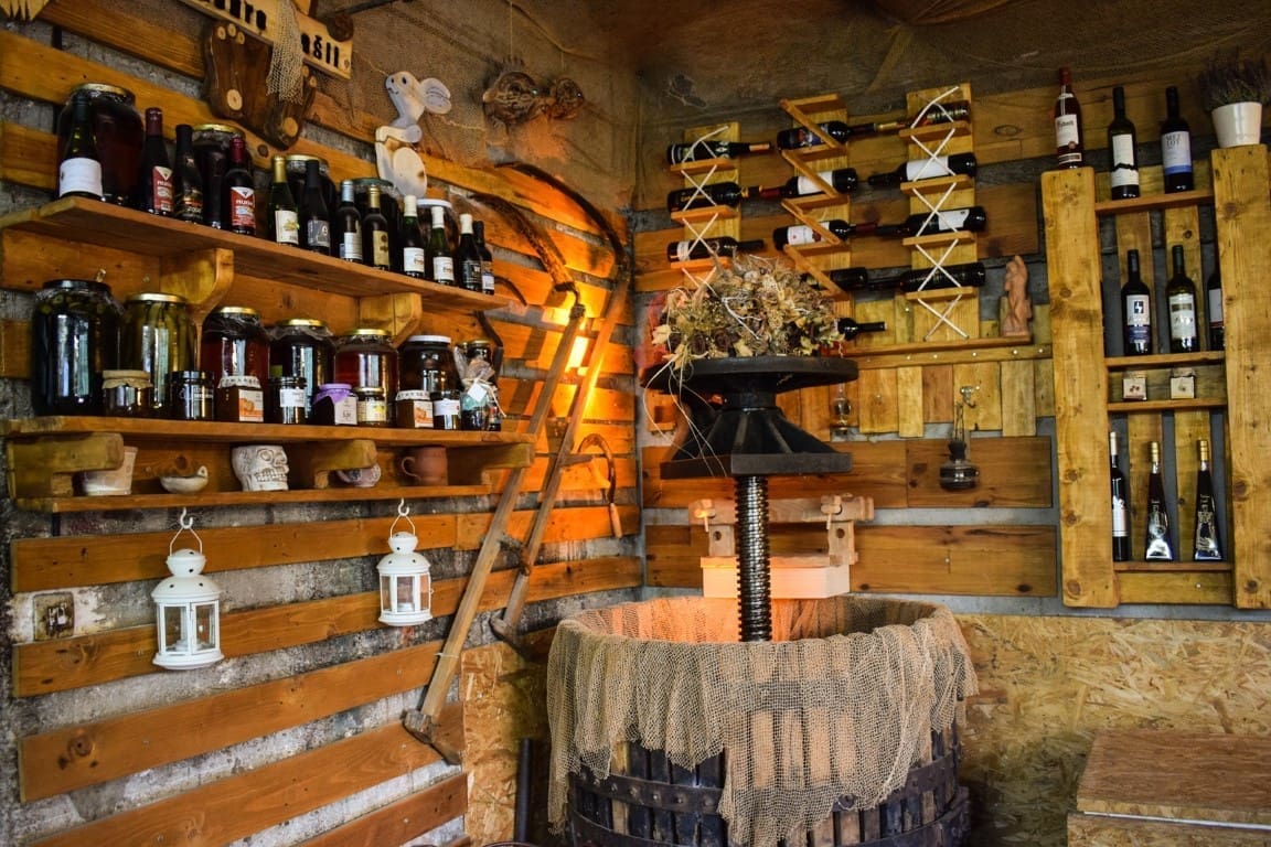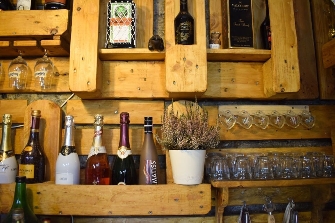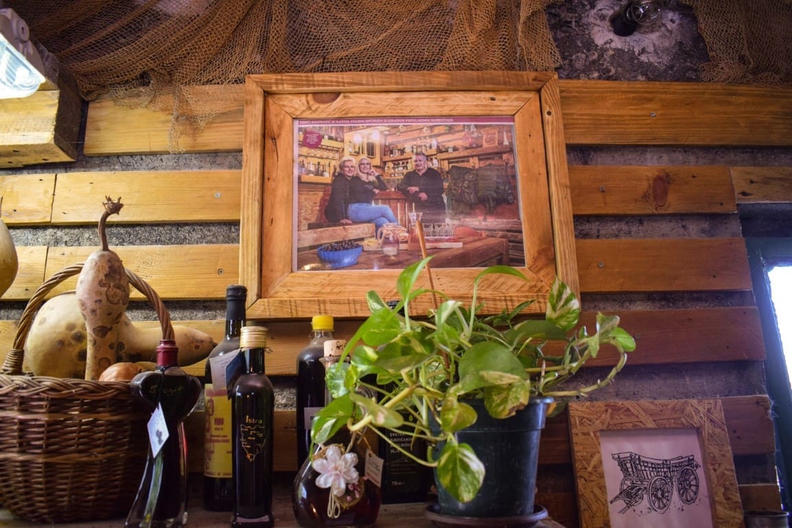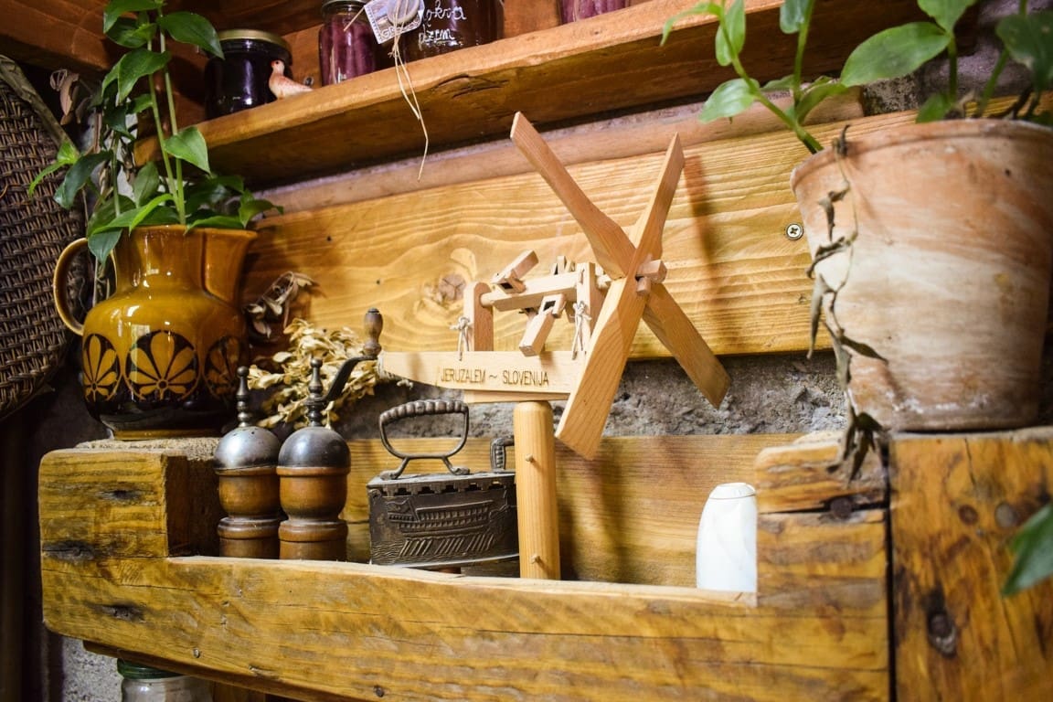 Što je konoba bez šanka vjerojatno se i Tonći zapitao kad je došao na ideju napraviti šank od paleta i barske stolice. Kako je supruga Kata iz ribarske obitelji, ribe izrađene od paleta postale su neizostavan detalj koji je dao jedan poseban štih ovoj konobi. Naravno, bilo je potrebno napraviti i sve vitrine na koje je domaćica mogla pospremiti svoje delicije koje priprema. Tu su i stalci za vino i razne rakije koje također rade sami.
