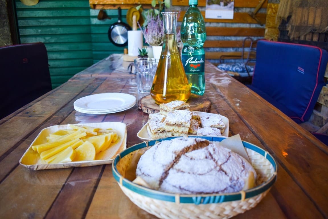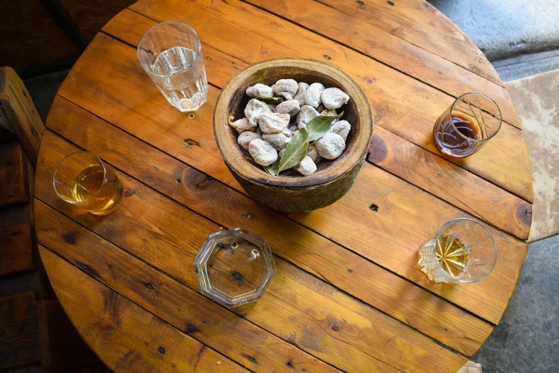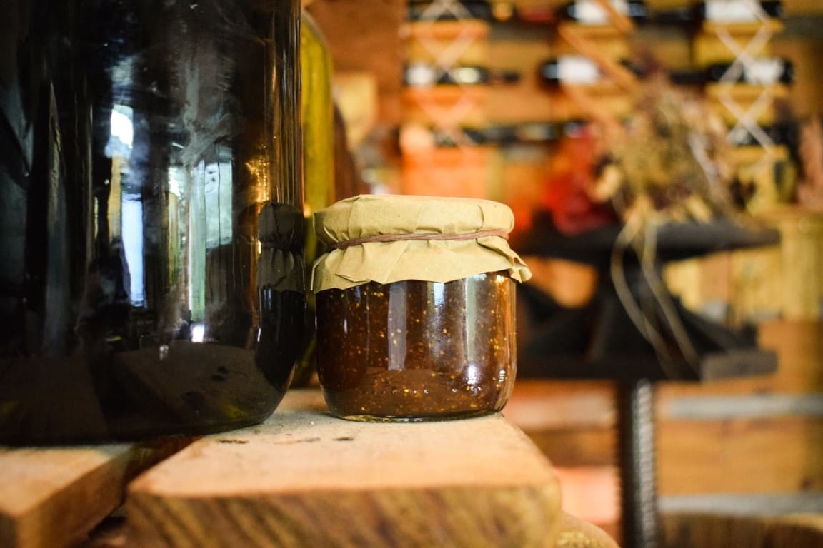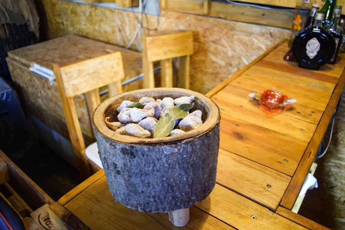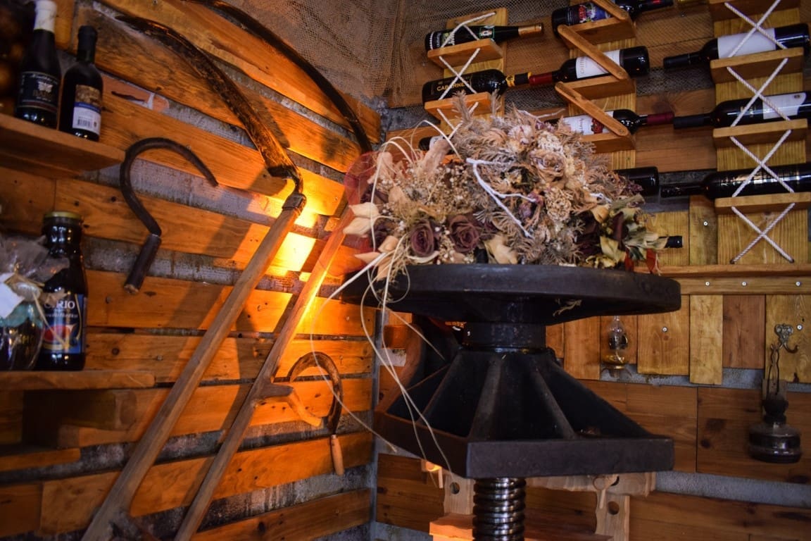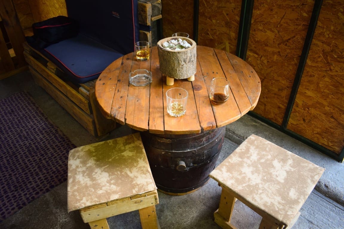 Što je konoba bez šanka vjerojatno se i Tonći zapitao kad je došao na ideju napraviti šank od paleta i barske stolice. Kako je supruga Kata iz ribarske obitelji, ribe izrađene od paleta postale su neizostavan detalj koji je dao jedan poseban štih ovoj konobi. Naravno, bilo je potrebno napraviti i sve vitrine na koje je domaćica mogla pospremiti svoje delicije koje priprema. Tu su i stalci za vino i razne rakije koje također rade sami.