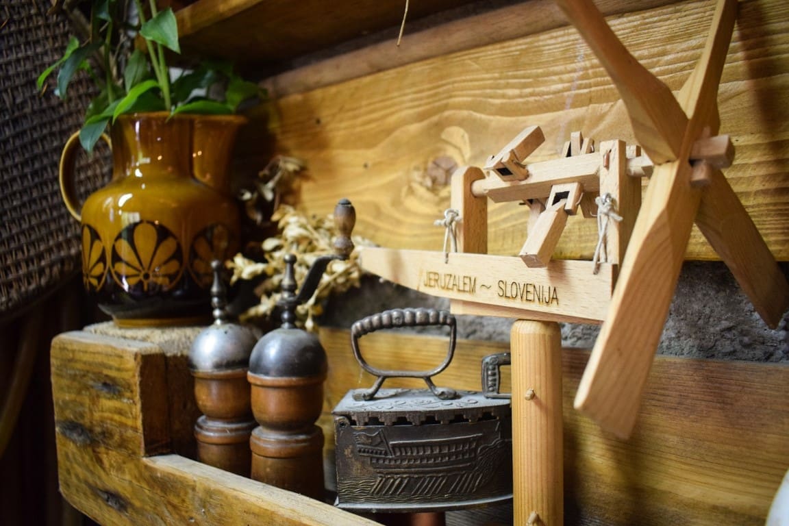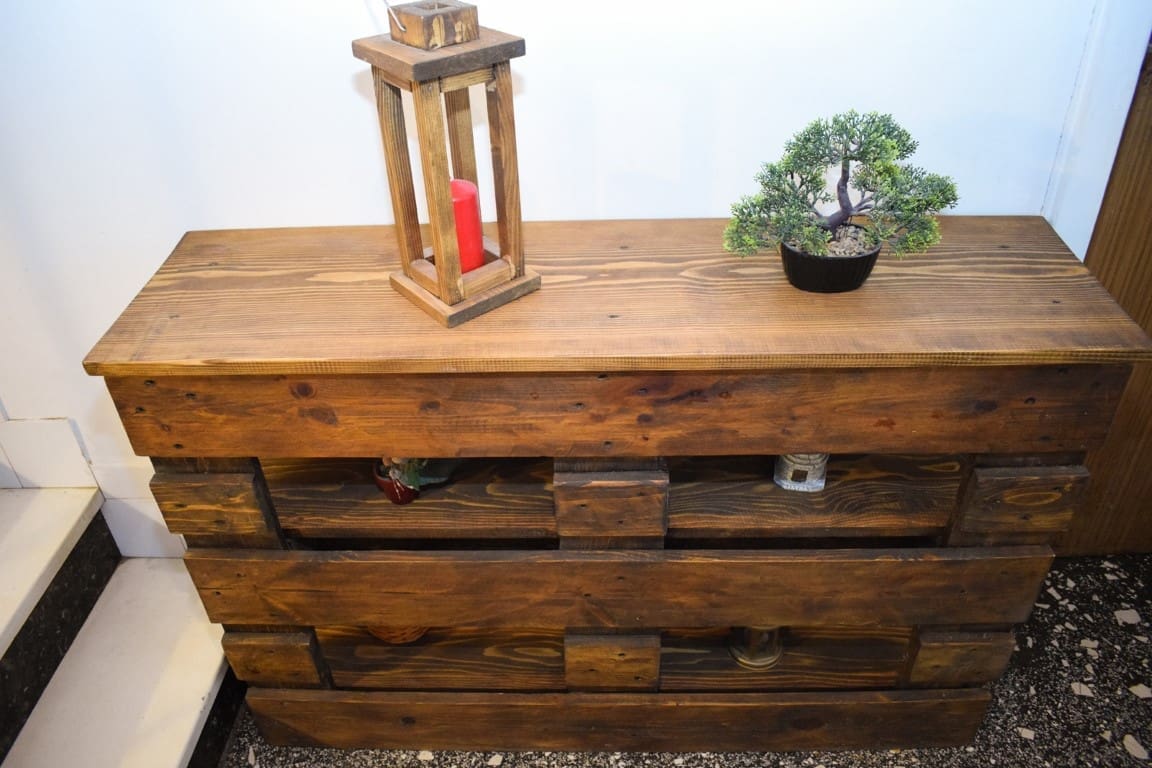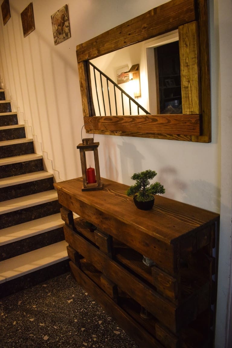 Daske za posluživanje hrane, svjetiljke, stalci za čaše, lampe izrađeni su od paleta te ovu konobu pretvaraju u mjesto kojem se poželite vratiti. Ni gospođa Kata nije sjedila prekriženih ruku, ona je glavna kad je pituravanje u pitanju te kad treba dodati još po koju ideju što bi to njen suprug mogao napraviti. Pa je tako priča o paletama ''izašla'' iz okvira konobe te se preselila u kuću i dvorište. Tu je Tonći napravio dio namještaja za hodnik te autić u koji je smjestio pješčanik kako bi se njegov unuk mogao igrati. Kućica za ptice te posude za cvijeće također krase dvorište.