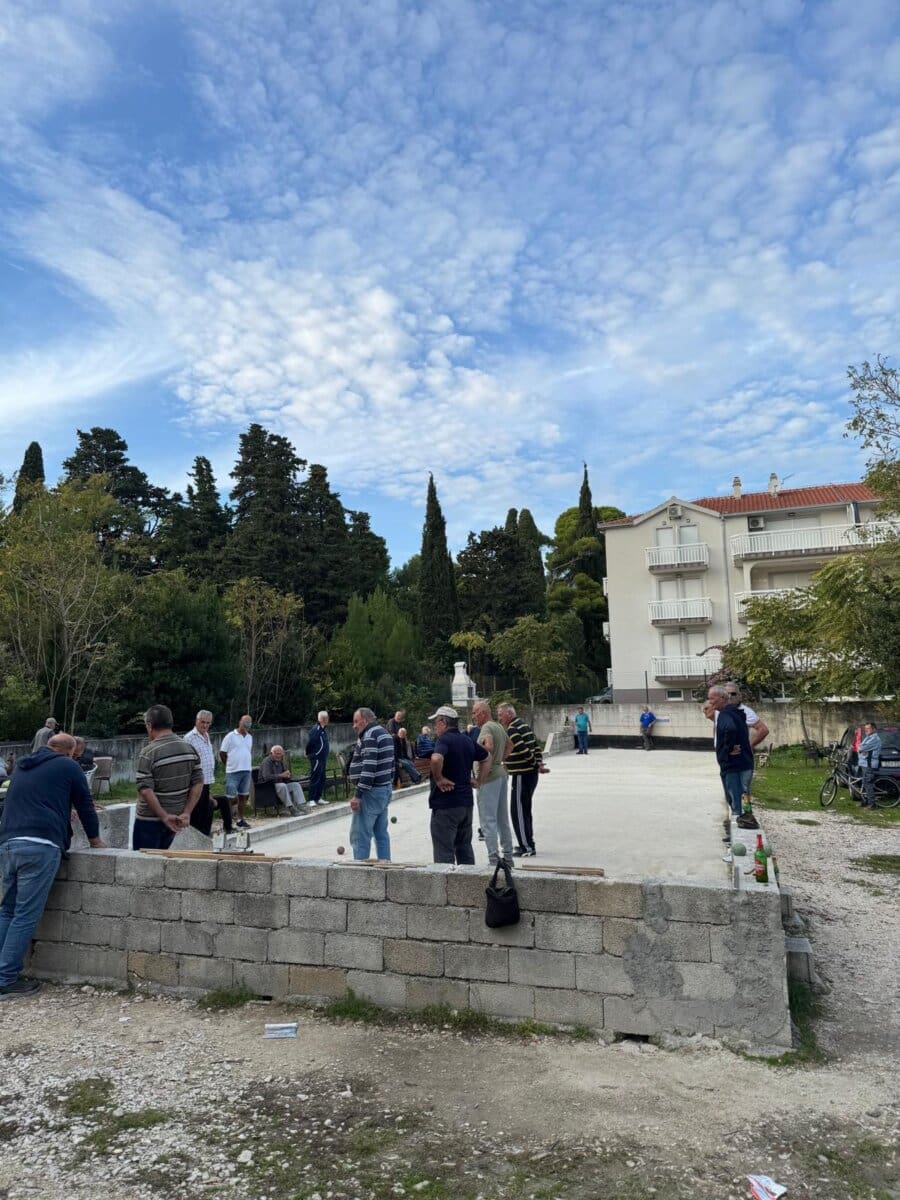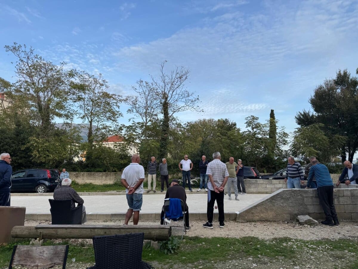 ''Dite moje, mora mi bit dobro u Kaštelima, kad tu živim već 78 godina. Dobro je, dobro je ovo misto za život. Sunce nam je, imamo more, malo vrtla i nekako se preživljava. Poslijepodne sam na balotama, ne igram više, nego promatram. Mirovina bi mogla biti bolja ali što je tu je'', objašnjava nam ovaj Kaštelanin. Za susjednim stolom pije se bevanda , prate se balote . Onako nevoljko odgovaraju na moja pitanja, ali ipak uspijemo uspostaviti komunikaciju.