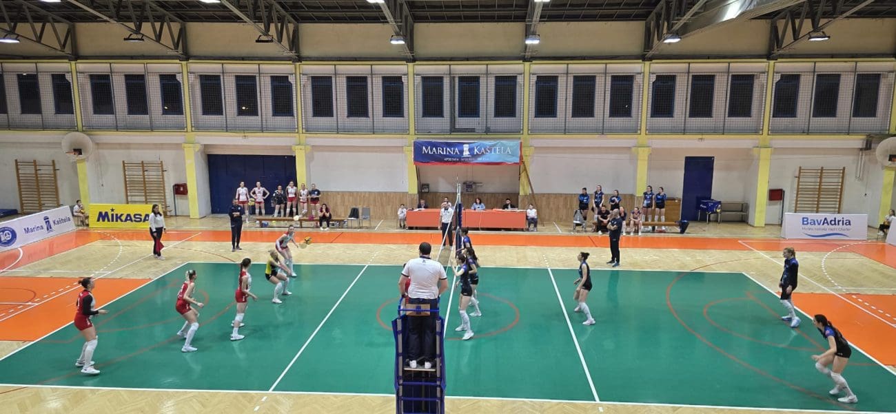 Iako su “marinke” vodile i imale prednost u prvom setu, “malene su ih stigle i prestigle.. Međutim, Marina Kaštela nije se predala te je u drugom setu pružila snažan otpor i izjednačila rezultat na 1:1 osvojivši set sa 25:20. Ipak, ŽOK Ribola Kaštela brzo je vratila kontrolu nad igrom, treći set uvjerljivo dobila s 25:11, a u četvrtom setu, koji je bio I najneizvjesniji, slavila s 27:25, čime je osigurala pobjedu u ovom dvoboju.
