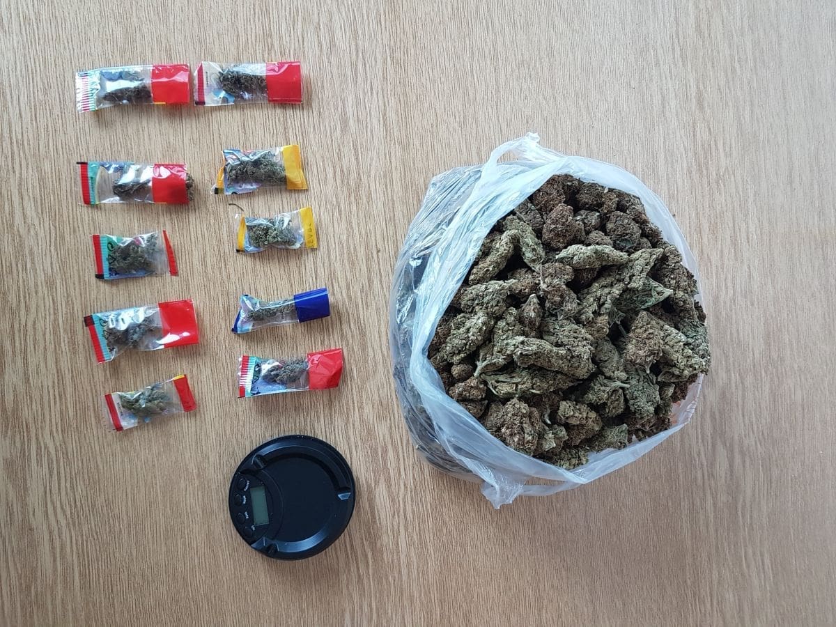 Kod njega je u stanu kojeg koristi na području Kaštela pronađena i oduzeta jedna PVC vreća sa sadržajem droge marihuane težine 500 grama, te još deset PVC vrećica sa sadržajem droge marihuane ukupne težine 12,5 grama.