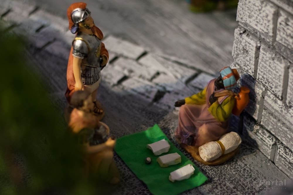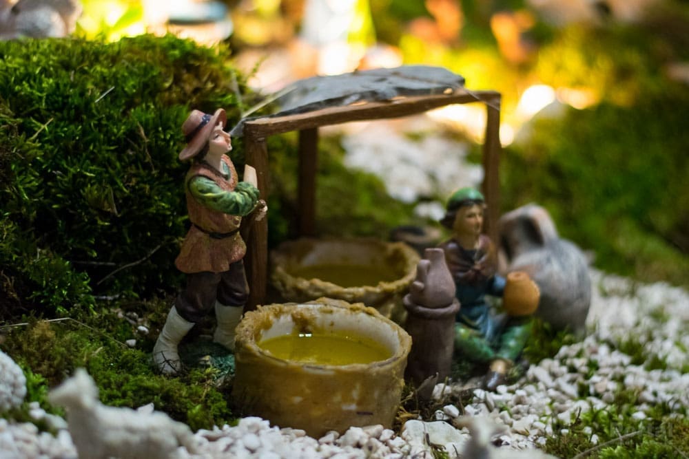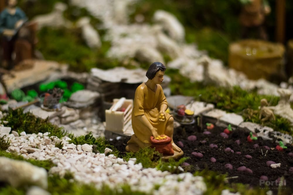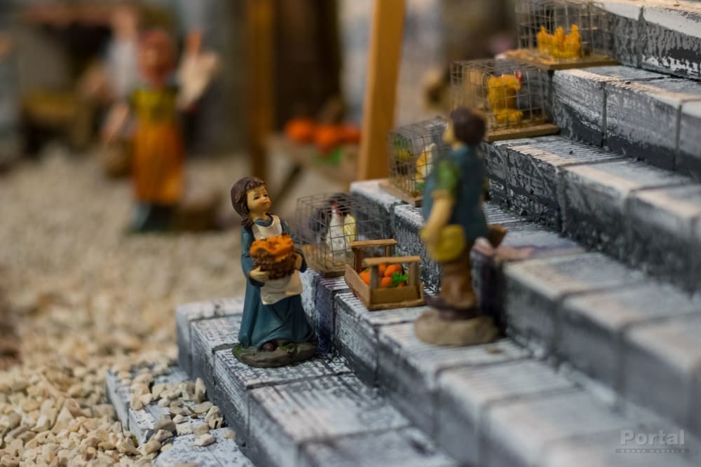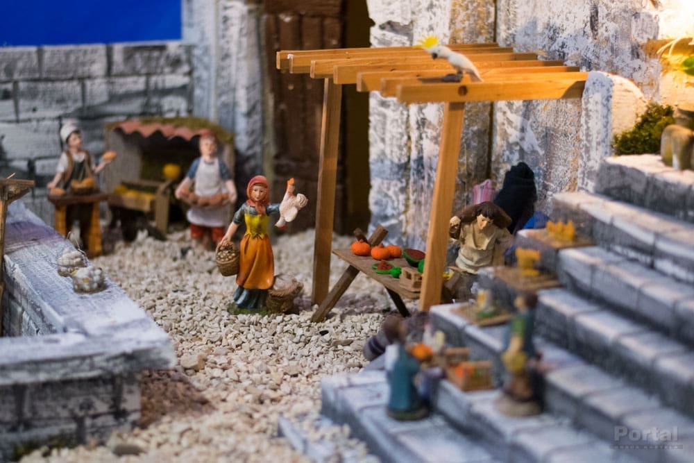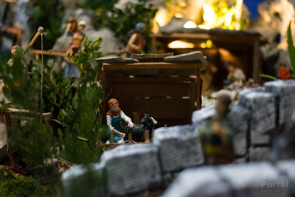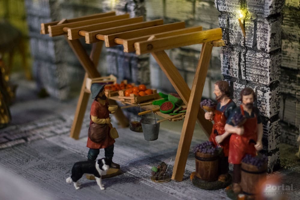 Tek jednim pogledom na ovaj uradak već se primjećuju brojni zanimljivi elementi, od cijelog niza figura koje predstavljaju ljude u povijesnim i svakodnevnim aktivnostima, različite životinje, može se tu naći voće i povrće na tržnici, proizvodnja maslinovog ulja, priprema gradela, sadnja krumpira i drugog povrća, zanimljiva arhitektura...