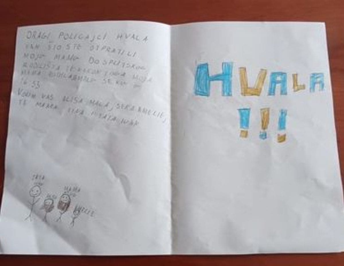 „Dragi policajci hvala vam što ste otpratili moju mamu do splitskog rodilišta te nakon toga moja mala rodila je malu seku.