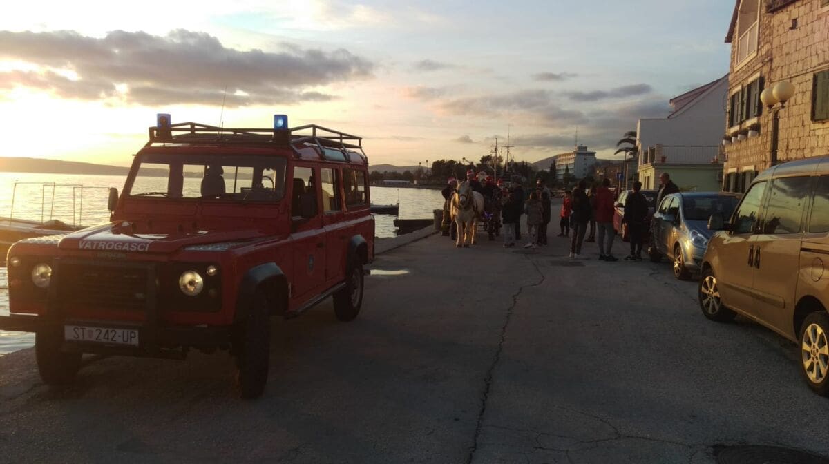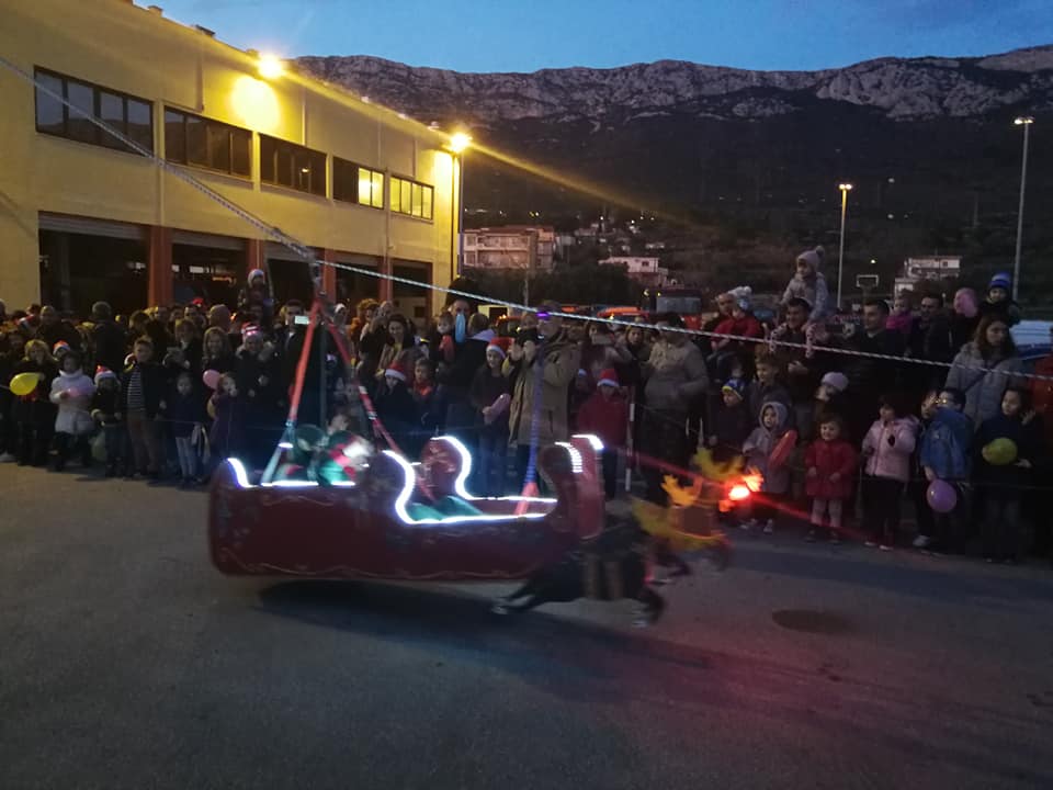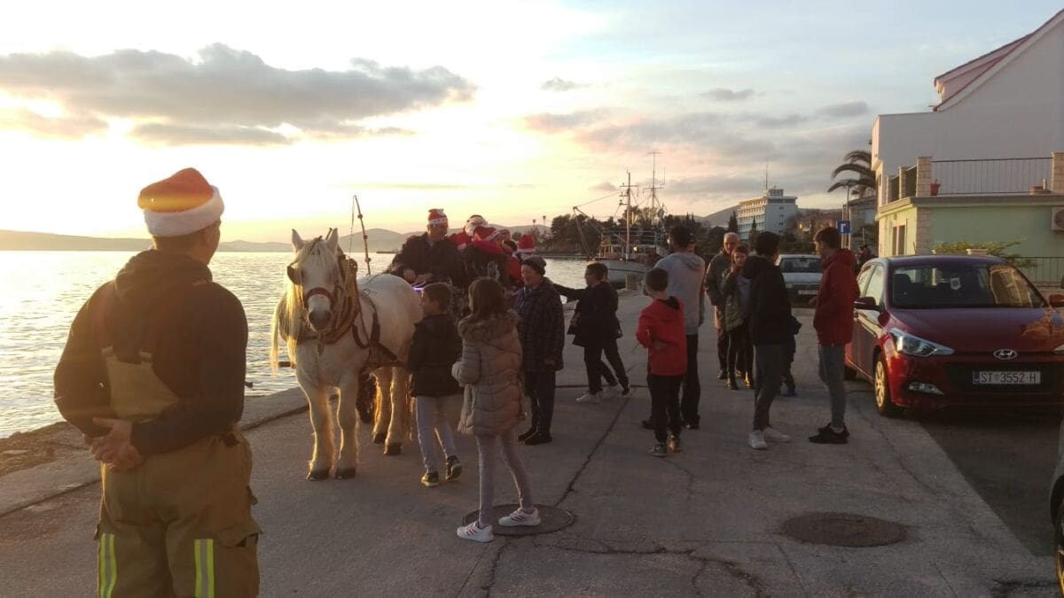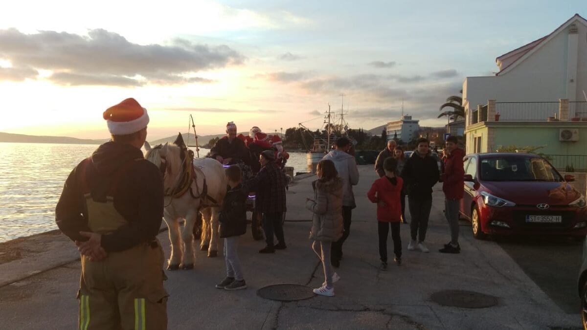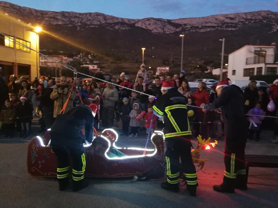 Kaštelanski vatrogasci su i u ovo predblagdansko razdoblje organizirali tradicionalno spuštanje Djeda Božićnjaka saonicama s vrha vatrogasnog tornja, a tome je prethodila i podjela poklona djeci duž kaštelanske obale uz pomoć saonica koja je vukao konj.