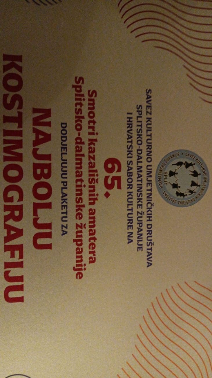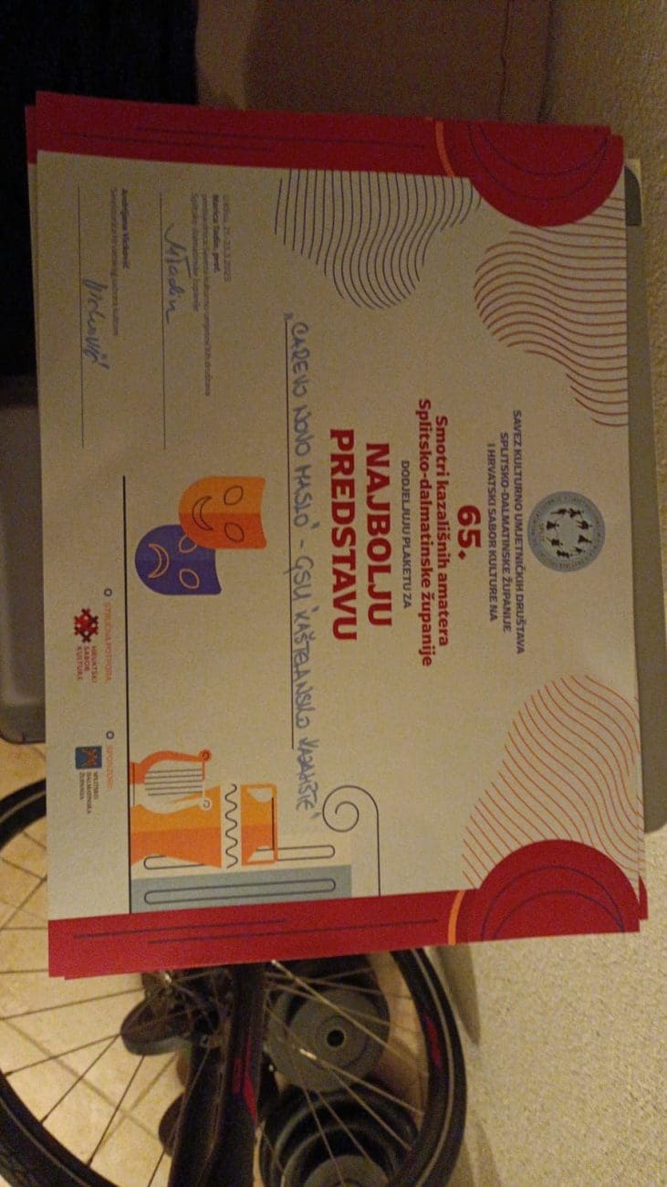 Na trodnevnoj 65. smotri kazališnih amatera Splitsko-dalmatinske županije, održanoj u Domu kulture "Jozo Buliga" u Klisu, predstava "Carevo novo maslo", u režiji J.V. Finglera i izvedbi GSU "Kaštelansko kazalište", osvojila je nagradu za najbolju predstavu smotre, kao i za najbolju kostimografiju.
