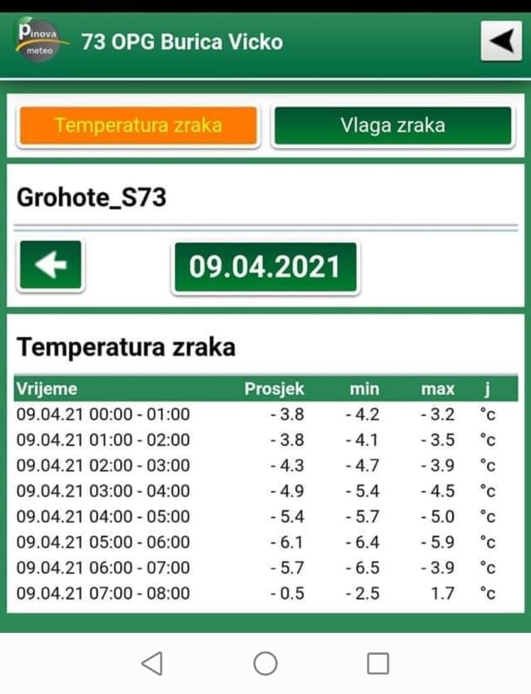 Iako nije u mreži postaja došli smo do podatka da je jutros u polju kraj Grohota na 2 metra izmjereno čak -6,1°C.