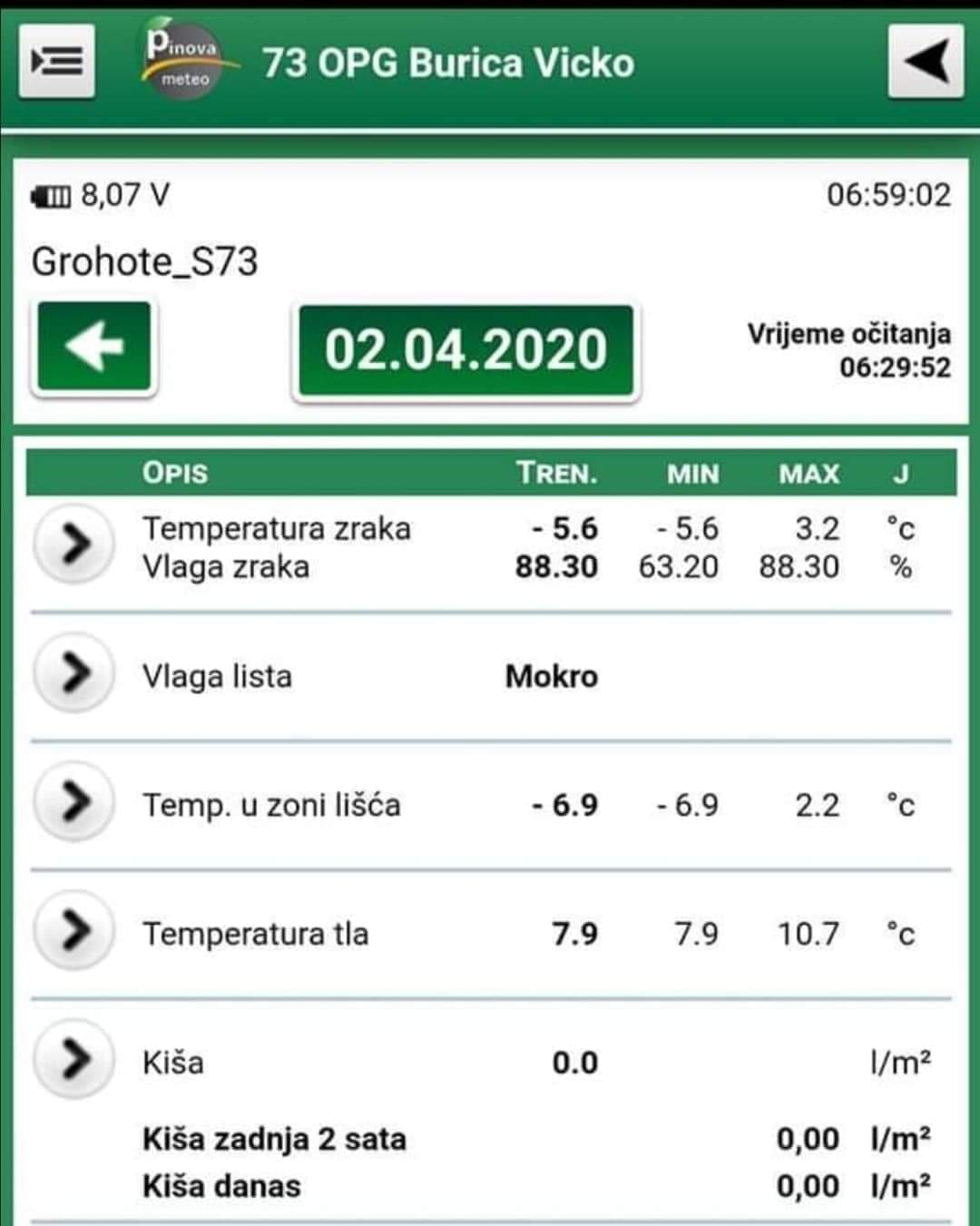 Podaci koji nisu uvršteni u javne mreže meteo postaja također su vrijedni pažnje. Tako je agrometeorološka postaja u polju u Grohotama, u unutrašnjosti Šolte, jutros na standardna 2 metra iznad tla izmjerila -5,6°C, a iznad tla -6,9°C. Iako ne znamo je li ova postaja kalibrirana, ostaje činjenica da je unutrašnjost Šolte jutros imala umjeren mraz. Naši čitatelji su u polju kod Dicma jutros izmjerili -7°C.
