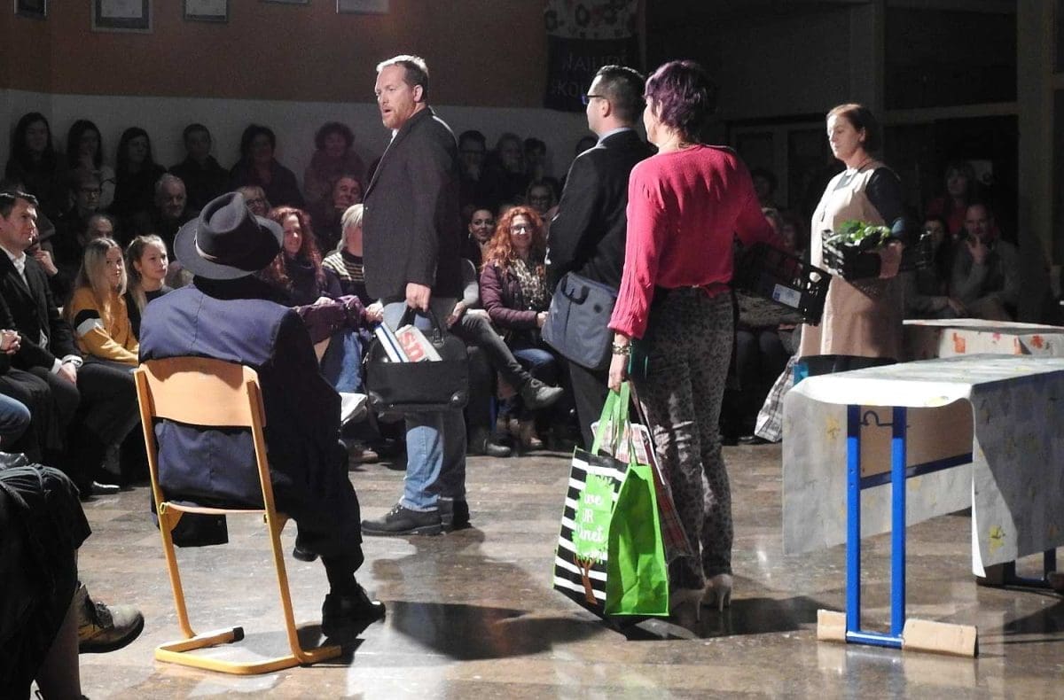 Kroz dobru šalu provlači se jasna kritika političkih elita i klijentelizma. Svi oni koji se odluče sljedećih mjeseci pogledati "Katu Žrnovku" mogu očekivati 60 minuta dobre zabave ove Glumačke družine koja najavljuje igranje predstave u Splitu i široj okolici.