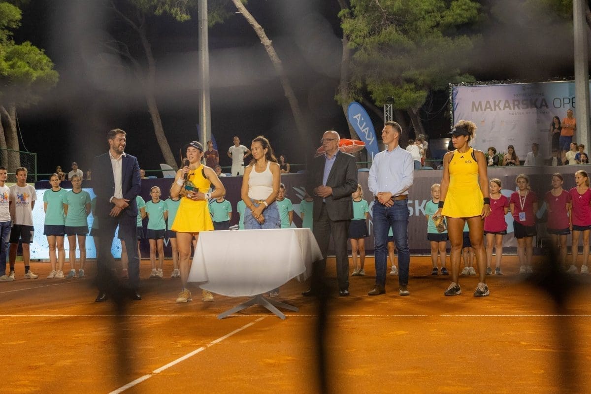 „Hvala svima što su došli i gledali ovaj meč. Jako sam zahvalna na energiji koju ste donijeli. Ovdje je divno. Čestitam Mayar na sjajnom tjednu. Ovo je bilo moje prvo WTA finale i igrati protiv nje bilo je iznimno iskustvo. Zahvaljujem direktoru turnira Feliksu Lukasu, sucima, skupljačima loptica i svima u organizaciji koji su zaslužni za realizaciju ovog turnira. Hvala vam što organizirate turnir na tako divnoj lokaciji pored mora. Kada sam stigla u Makarsku već je bila noć i nisam vidjela kakav pogled iz sobe imam, no kad sam ujutro vidjela more poželjela sam ostati ovdje što je dulje i zahvalna sam što se to i dogodilo. Hvala mom treneru Alejandreu Dulkou i mojoj obitelji koja me svakodnevno podržava“, u dahu je rekla Volynets kojoj je trofej uručio državni tajnik u Ministarstvu turizma i sporta Tomislav Družak.