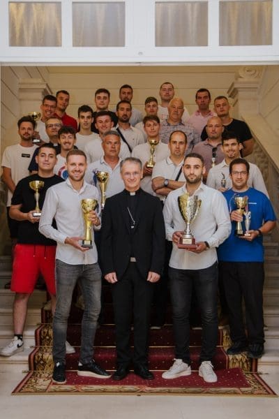Mladen Jurić, voditelj Katoličke malonogometne lige nadbiskupu je predstavio KMNL-u. Svima se zahvalio na pomoći i kratko je najavio nadolazeću 15. sezonu Katoličke malonogometne lige „IVAN PAVAO II.“