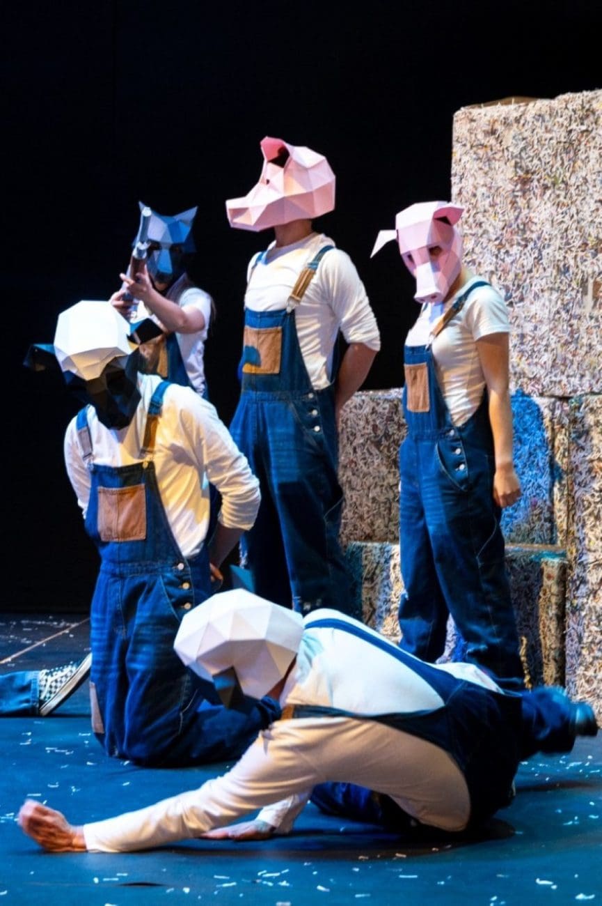 Režiju „Životinjske farme” u izvedbi Ekipe iz Kantuna potpisuje Nora Krstulović, scenografiju Vesna Režić, oblikovanje svjetla Srđan Barbarić, oblikovanje zvuka Vice Ercegović. Majstorica maski je Noa Lovrić, inspicijentica Ana Matijević, a logistička podrška Marina Vujčić.