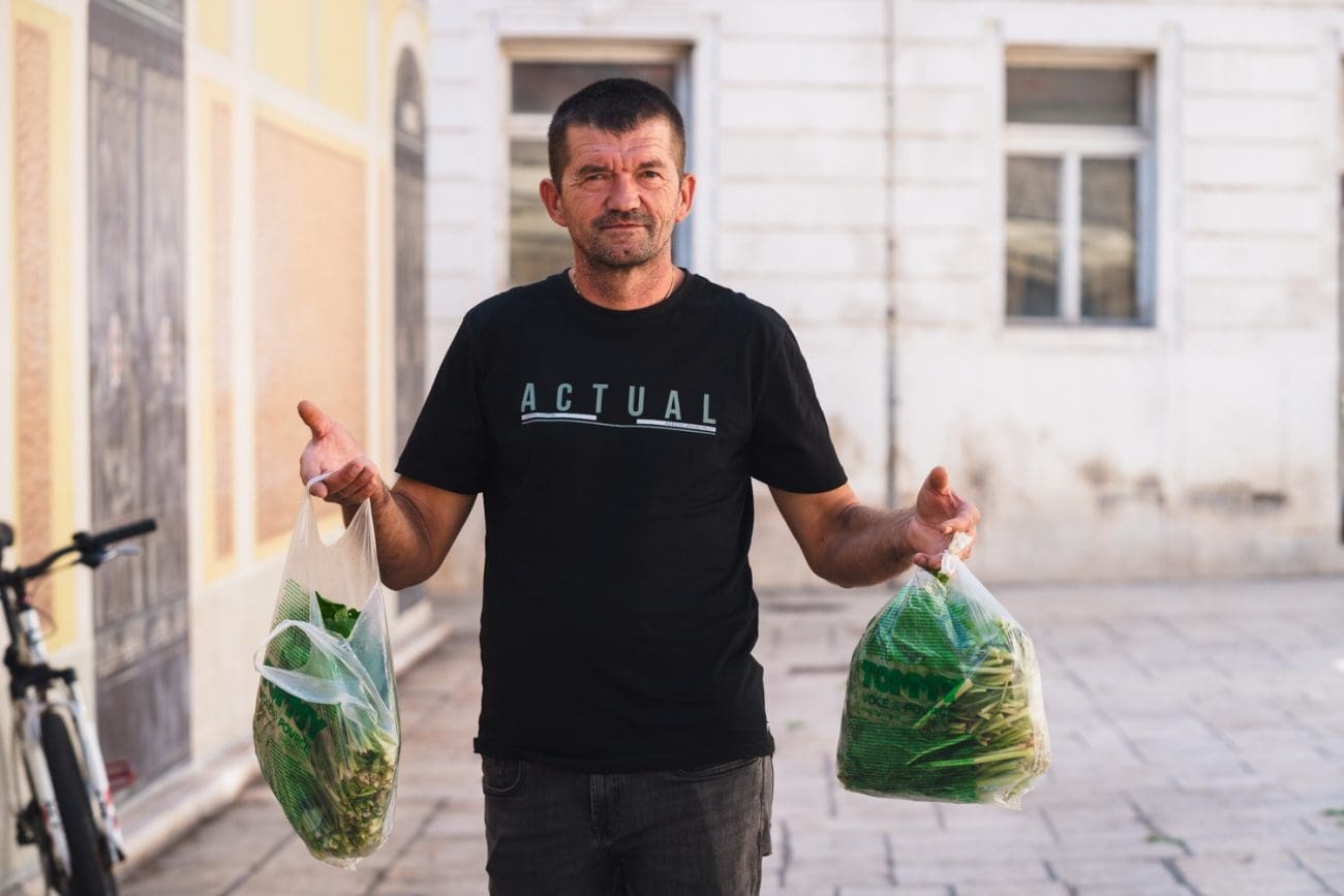 Jutros sam se probudio u 5 sati, nabrao, stavio u kese i sa susjedom došao do Solina. Onda sam se prebacio u bus. Evo u manje od pola sata sve je nestalo", kaže nam Zdravko dok dijeli posljednje kese ovog zelenog blaga.