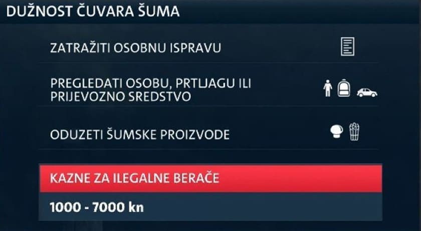 Prema Zakonu o šumama, dužnost je čuvara šuma od berača bez dozvole zatražiti osobnu ispravu, pregledati osobu, prtljagu ili prijevozno sredstvo te joj oduzeti šumske proizvode. Kazne za ilegalne berače kreću se od tisuću do sedam tisuća kuna.