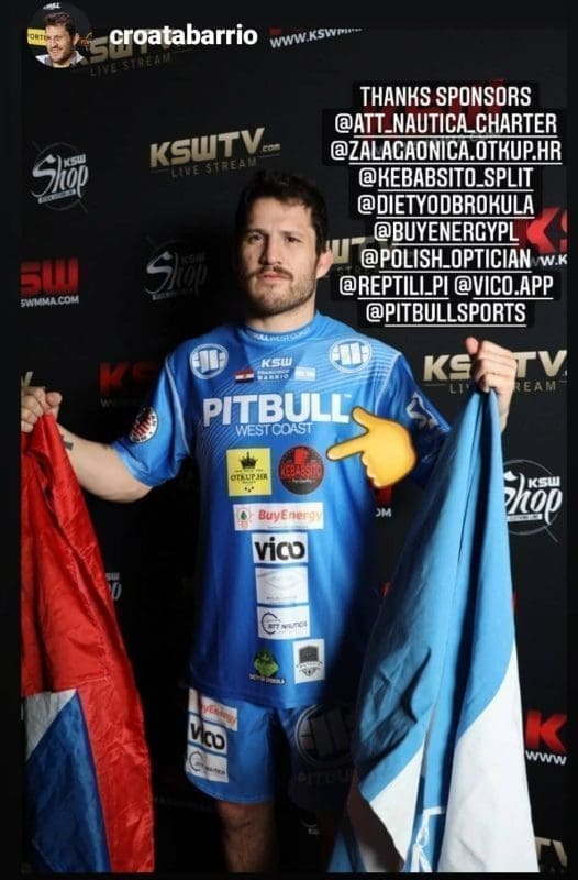 Da to su hlače mog jako dobrog prijatelja Francisca Barria Croate koji se bori u toj organizaciji. U borbi protiv Mateusza Legierskog bio sam mu sponzor te mi je nakon borbe poslao hlače kao uspomenu. Ja sam isto hrvao u klubu gdje i on i ostali smo jako dobri prijatelji. Volim sport i želim pridonosit takvim događajima. Ima tu i majica Mirka Filipovića s potpisom, a nadam se da će biti toga još od naših sportaša.
