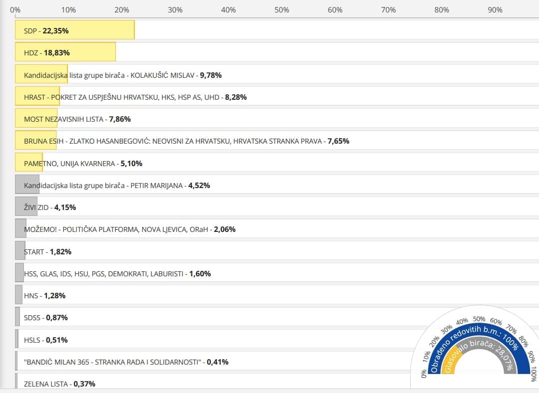 Rezultati jučerašnjih izbora za Europski parlament tema su dana. U Splitu je izašlo 28,07 birača s pravom glasa. Najviše glasova odnio je SDP (22,35 posto) što je veliko iznenađenje izbora u Splitu. Drugi je vladajući HDZ s 18,83 posto. Lista Mislava Kolakušića osvojila je značajnih 9,78 posto, a Hrvatski suverenisti ostvarili su respektabilan rezultat s 8,28 posto. Za razliku od nacionalnog nivoa, MOST je u Splitu prešao prag i osvojio 7,86 posto. Lista Brune Esih šesta je po uspjehu s osvojenih 7,65 posto, a prag je još prešla stranka Pametno s 5,1 posto.