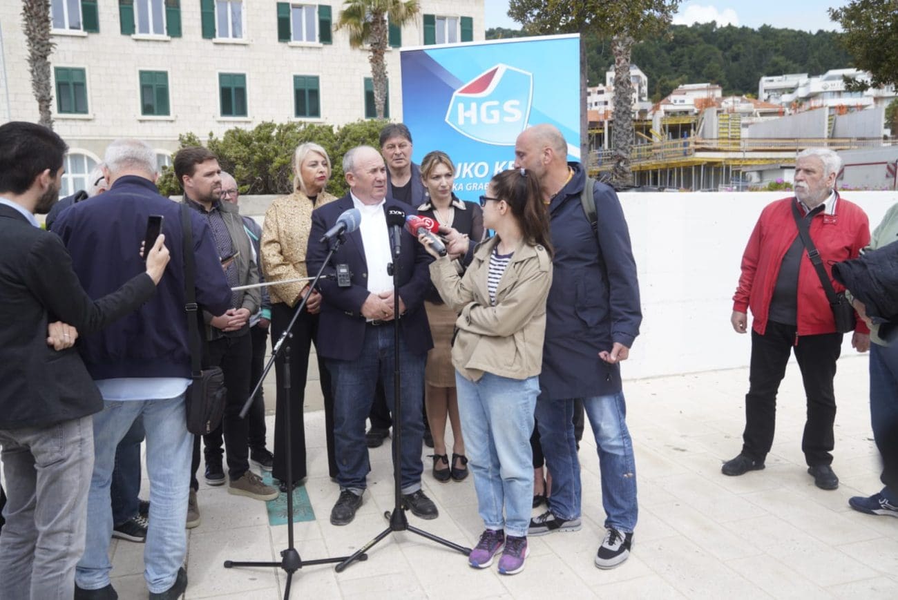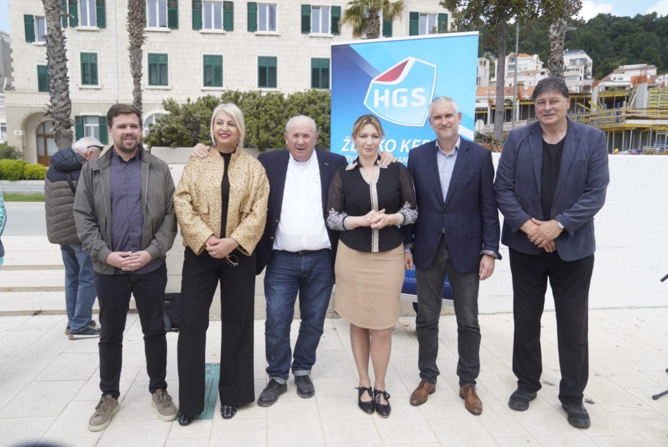 "Split je važan, ali tema su i cijela Splitsko-dalmatinska županija. Mi želimo vladati i gradom i županijom", poručio je, te je dao riječ Martini Nimac Kalcini, kandidatkinji HGS-a za županicu Splitsko-dalmatinske županije.