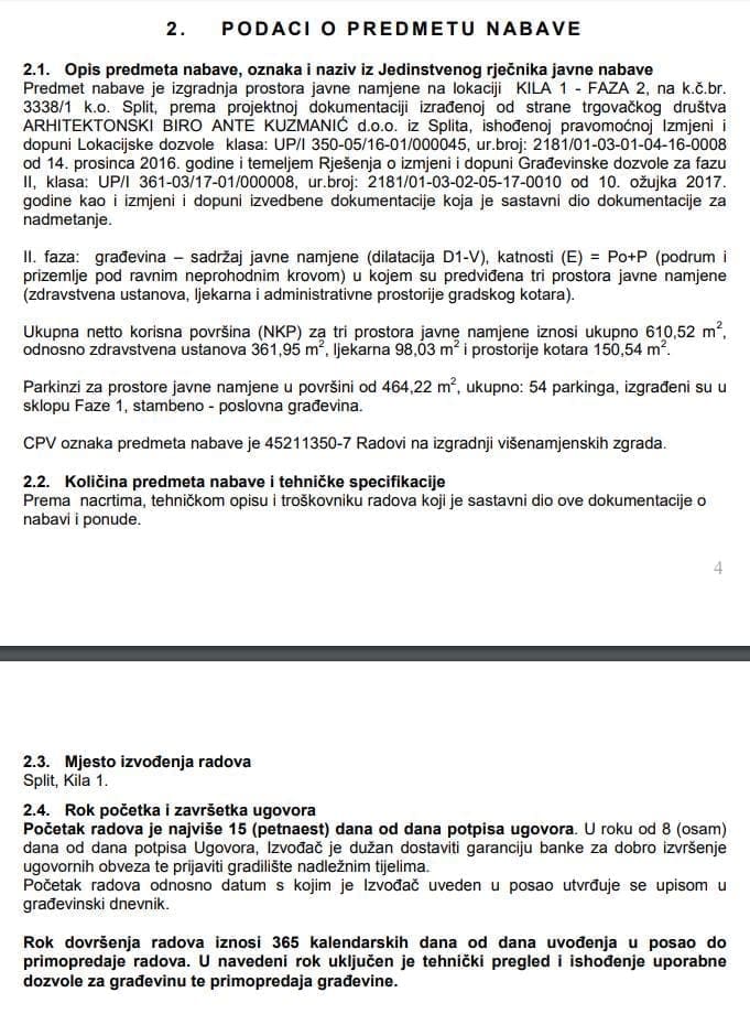 Dogovorom, umjesto vrtića grade se druge prostorije javne namjene. Ukupna neto korisna površina (NKP) za tri prostora iznosi 610,52 m2 (zdravstvena ustanova 361,95 m2, ljekarna 98,03 m2 i prostorije kotara 150,54 m2). Rok izgradnje: 1 godina od uvođenja u posao.