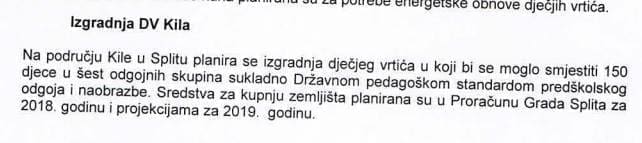 Vrtić je planiran na drugoj lokaciji za 150 djece (do 2020. godine 10 milijuna kuna). Baldasar je u svom prijedlogu izmjena i dopuna GUP-a, koje nisu prošle, imao i prenamjenu jednog zemljišta iz "I" (industrijska namjena) u D (javna i društvena namjena) gdje bi vrtić trebao biti - napisao je Čupić na svome Facebooku.